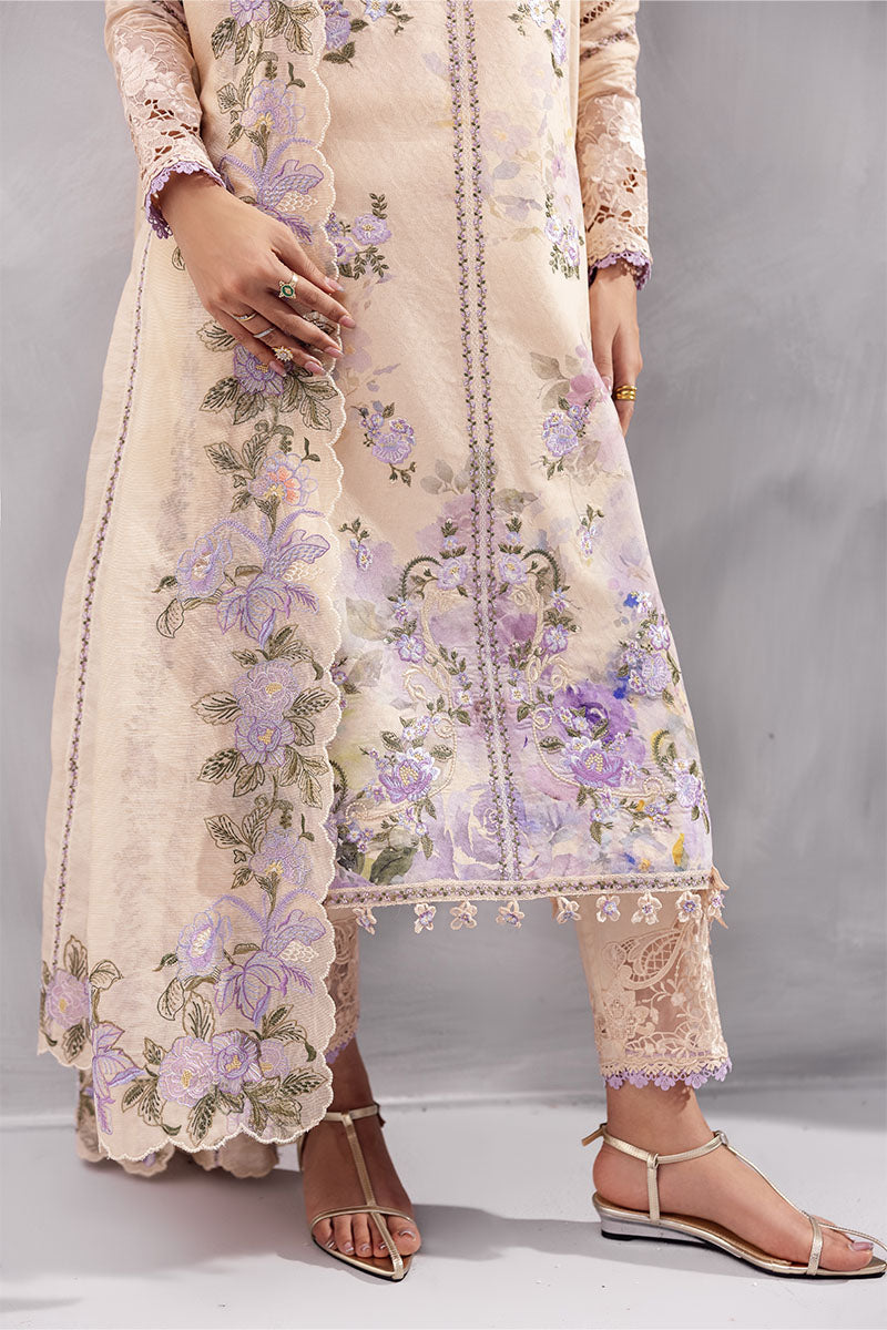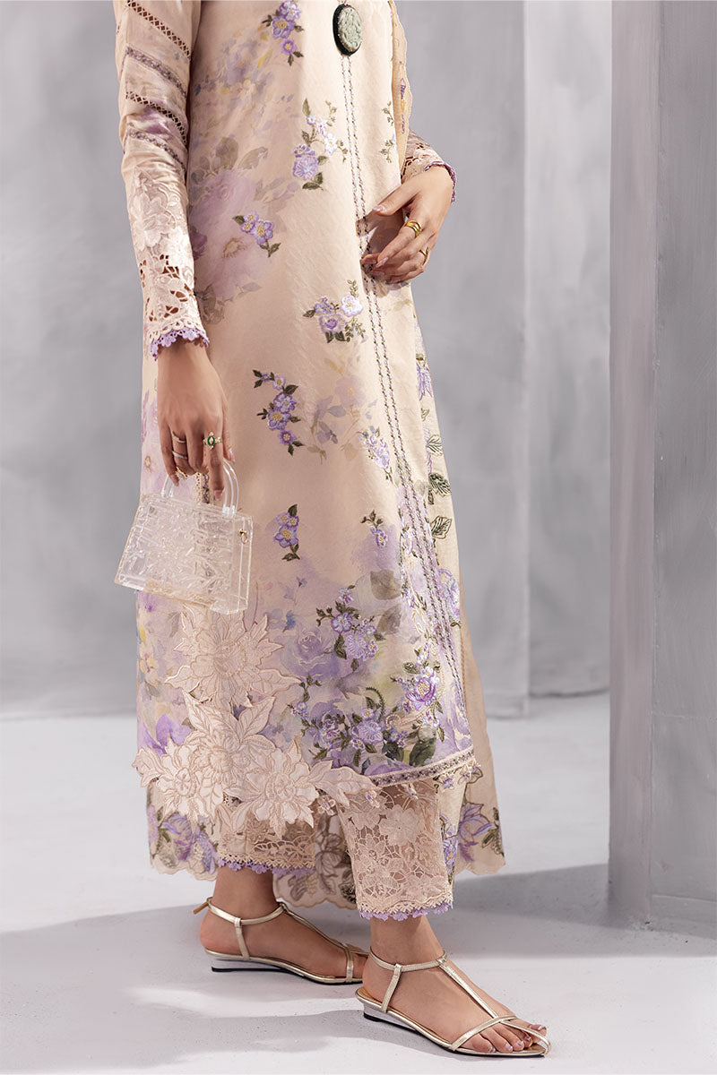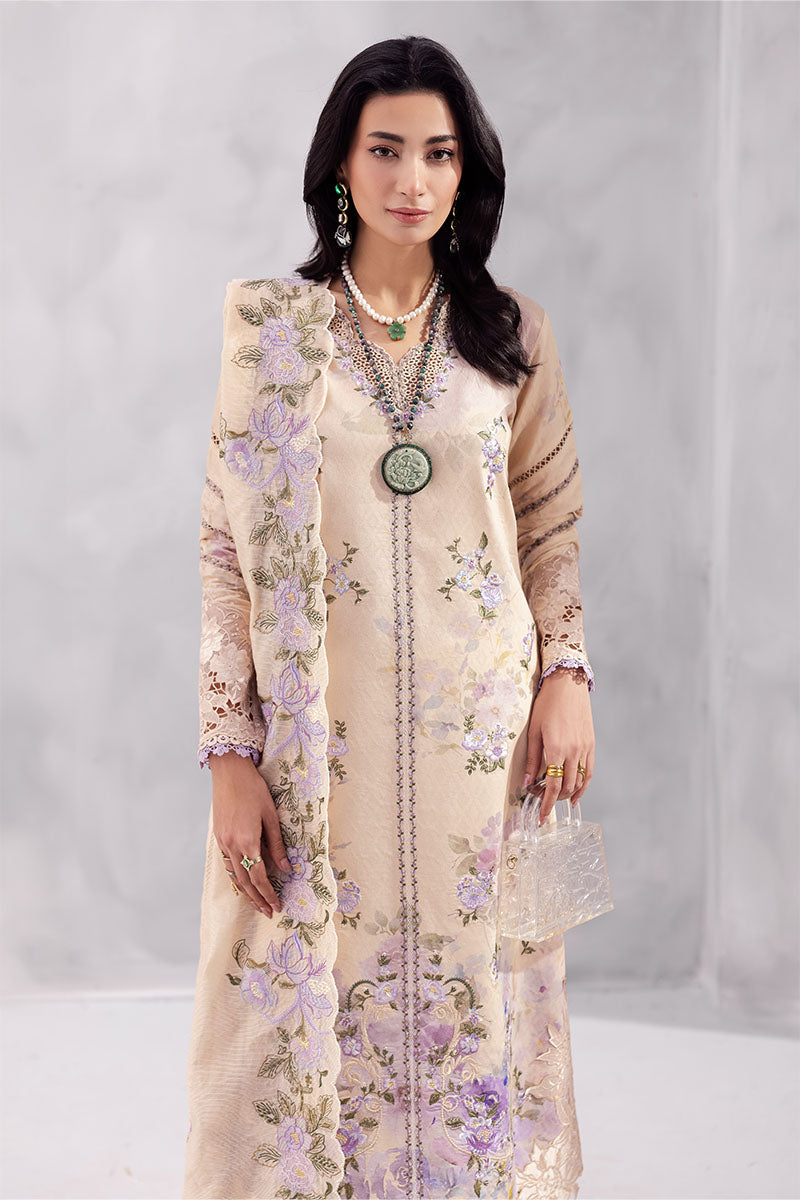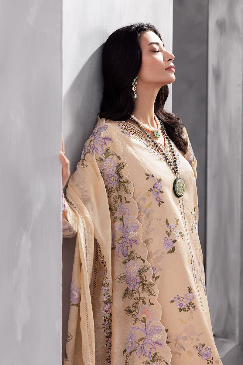 Abeera — earthy tones, elevated elegance. In a warm mocha hue, Abeera brings understated sophistication to your summer wardrobe. Featuring intricate embroidery on airy lawn fabric, it's paired with a beautiful dyed nylon viscos dupatta adorned with a graceful border — a perfect balance of depth, texture, and timeless charm.