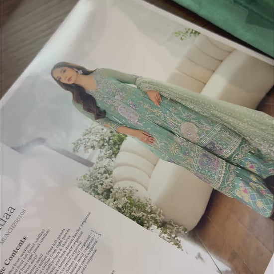 All laces used for finishing of the stitched outfit especially the dupatta or trousers may vary from the shoot.