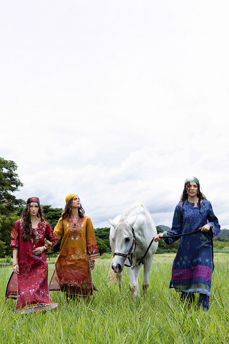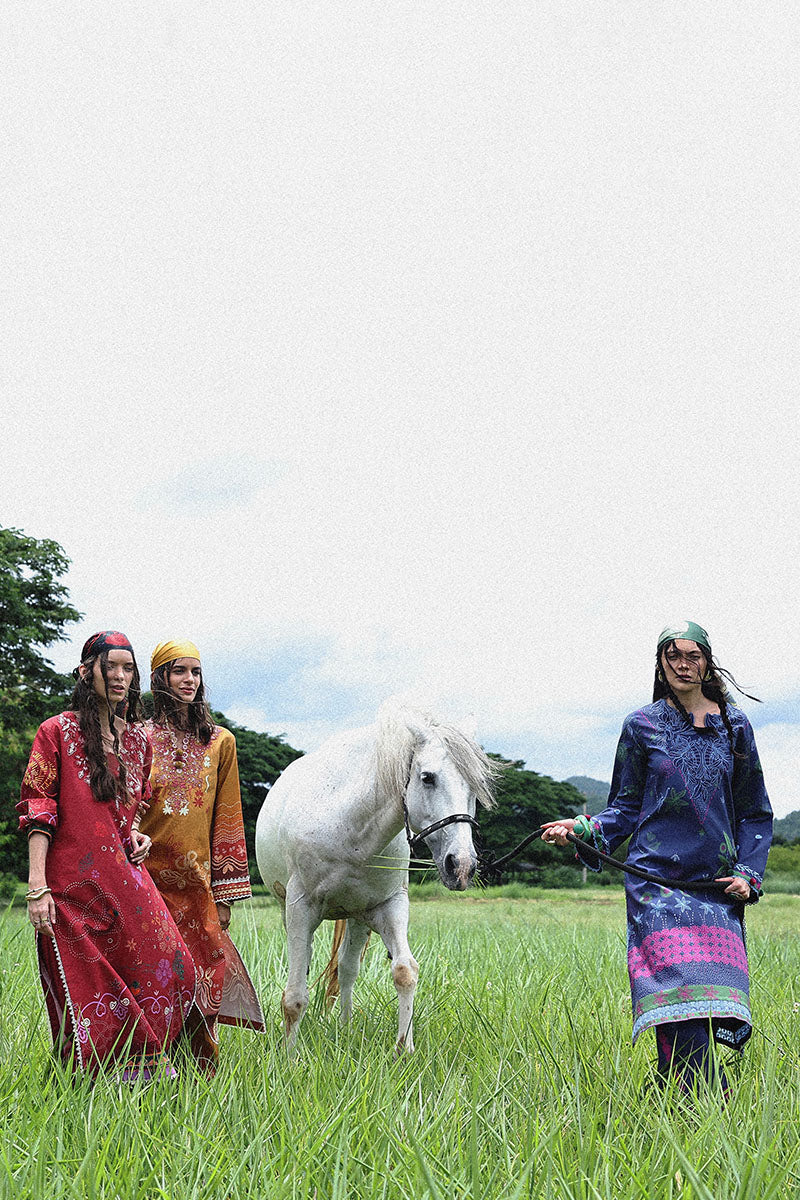 All laces used for finishing of the stitched outfit especially the dupatta or trousers may vary from the shoot.