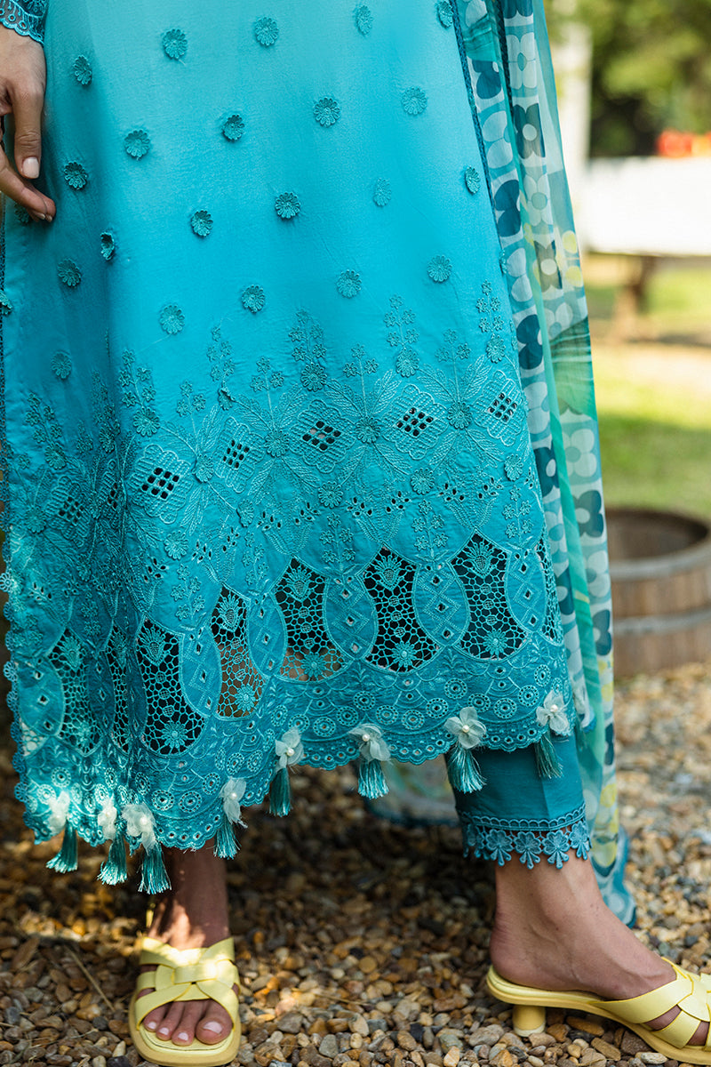 All laces used for finishing of the stitched outfit especially the dupatta or trousers may vary from the shoot.
