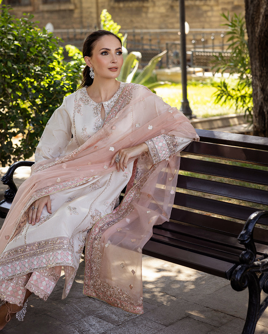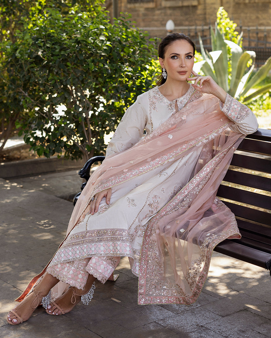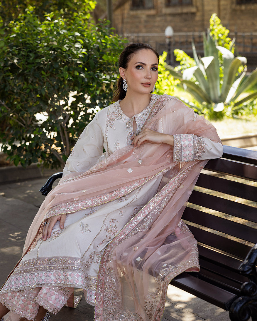 All laces used for finishing of the stitched outfit especially the dupatta or trousers may vary from the shoot.