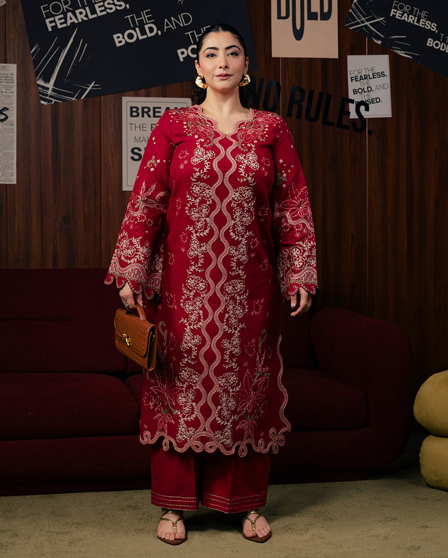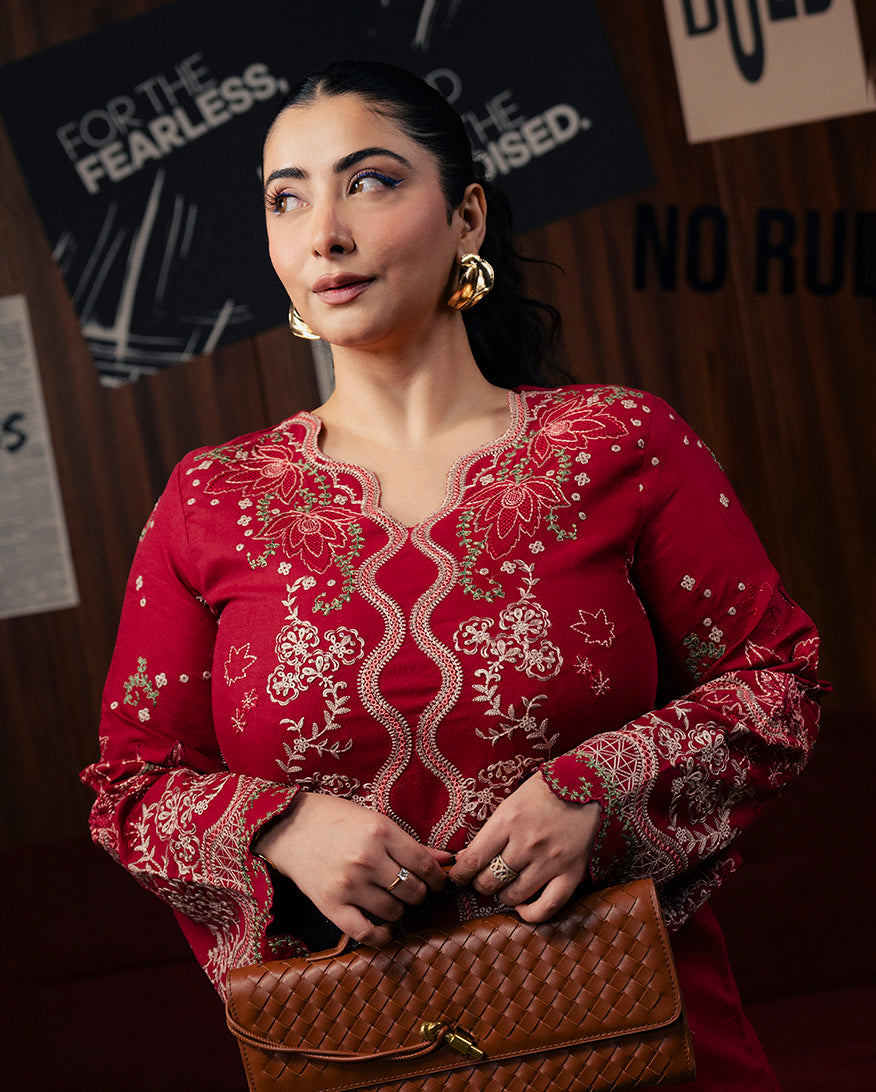 All laces used for finishing of the stitched outfit especially the dupatta or trousers may vary from the shoot.