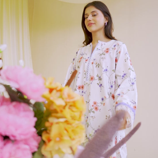 All laces used for finishing of the stitched outfit especially the dupatta or trousers may vary from the shoot.