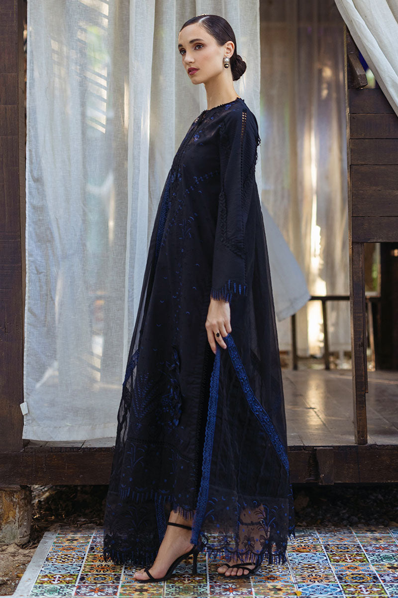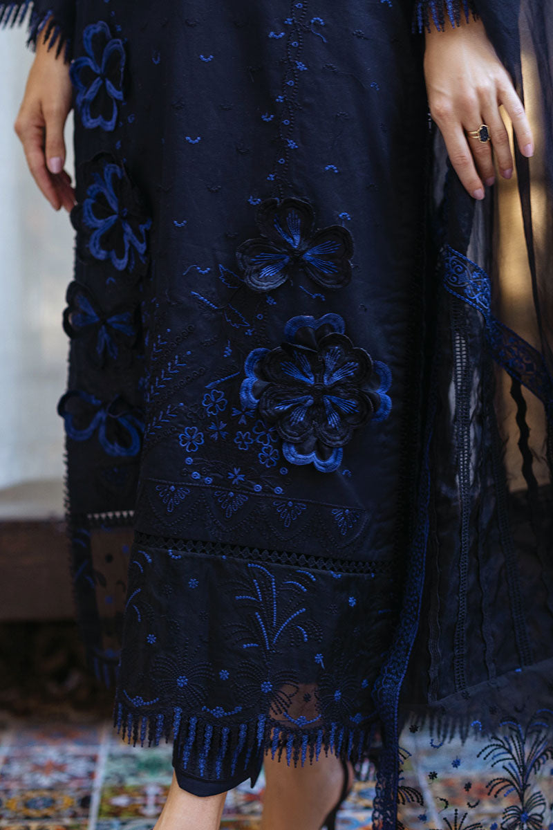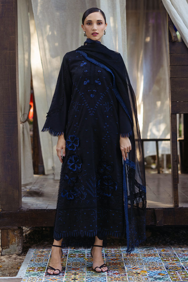 Dalia, where bold black meets vibrant blue accents in exquisite embroidery, defining elegance with a modern twist.