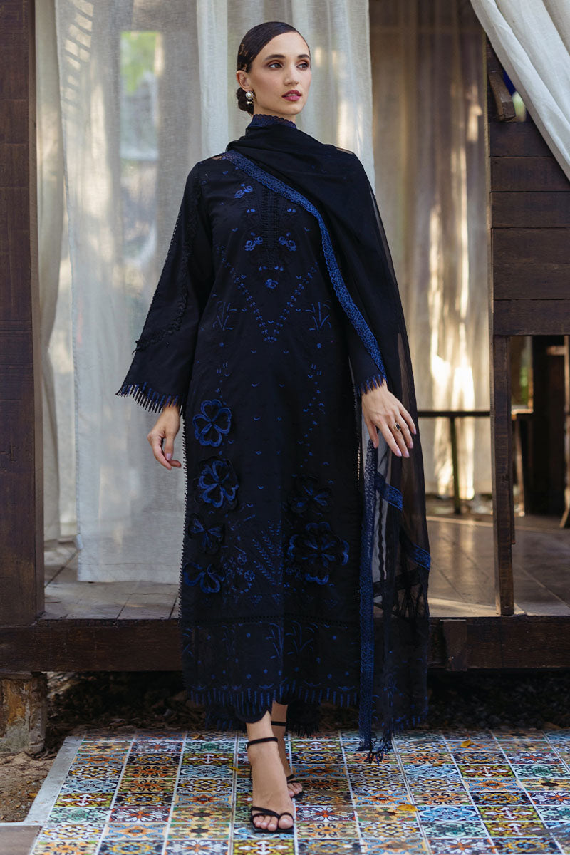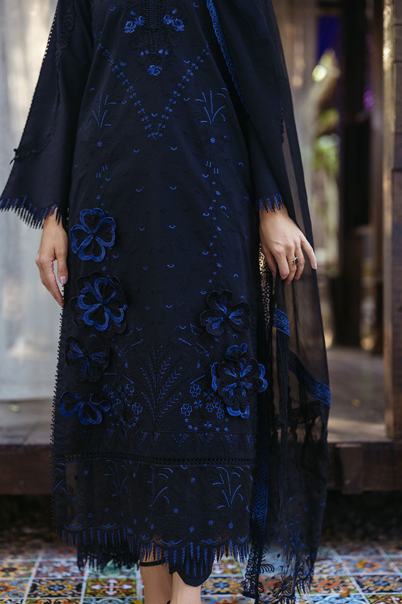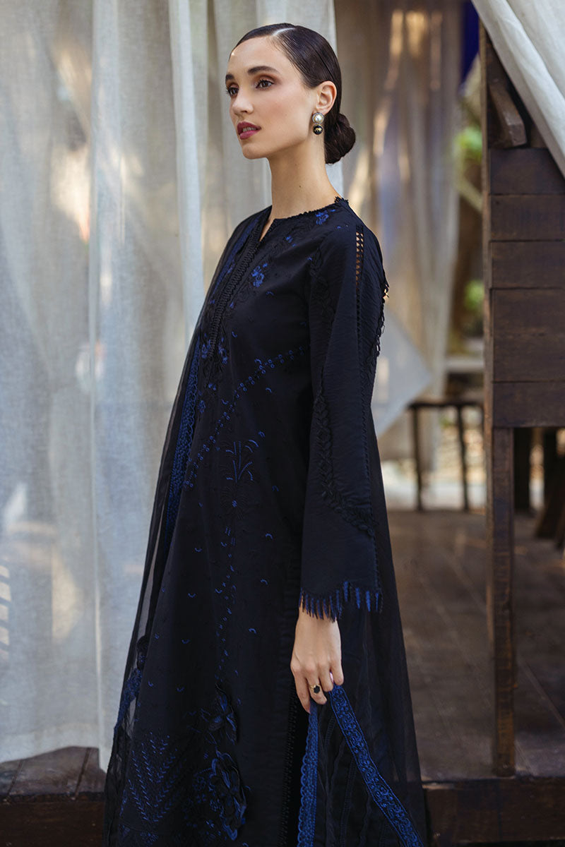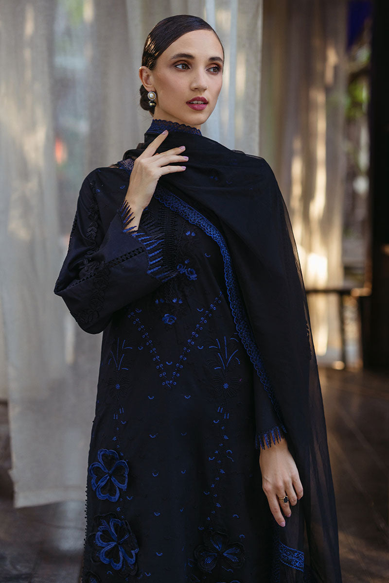 Dalia, where bold black meets vibrant blue accents in exquisite embroidery, defining elegance with a modern twist.