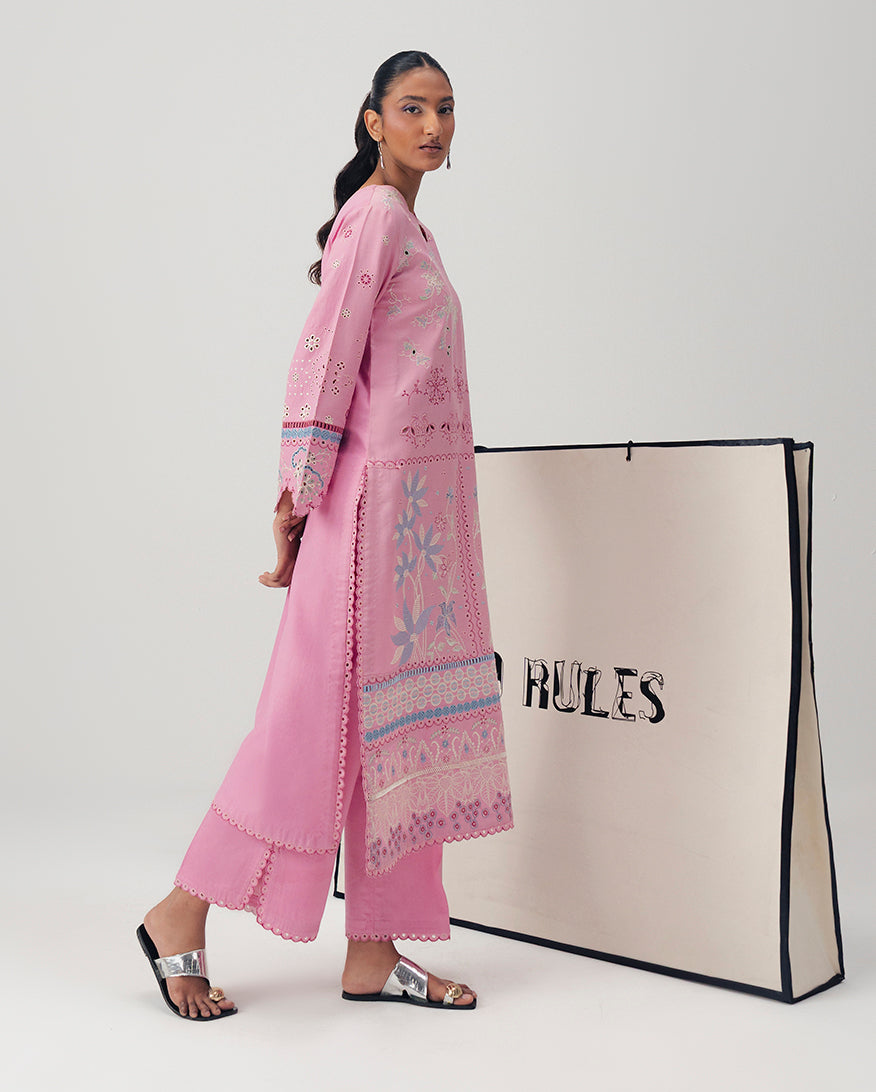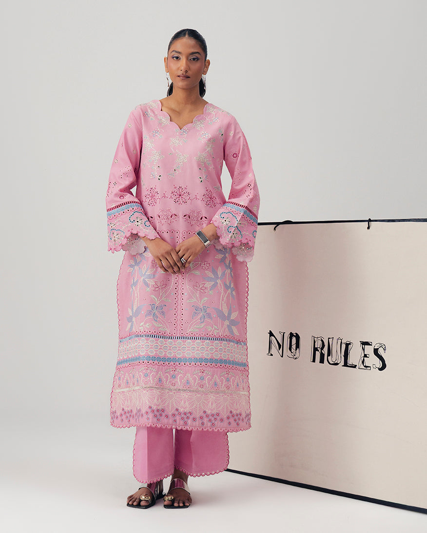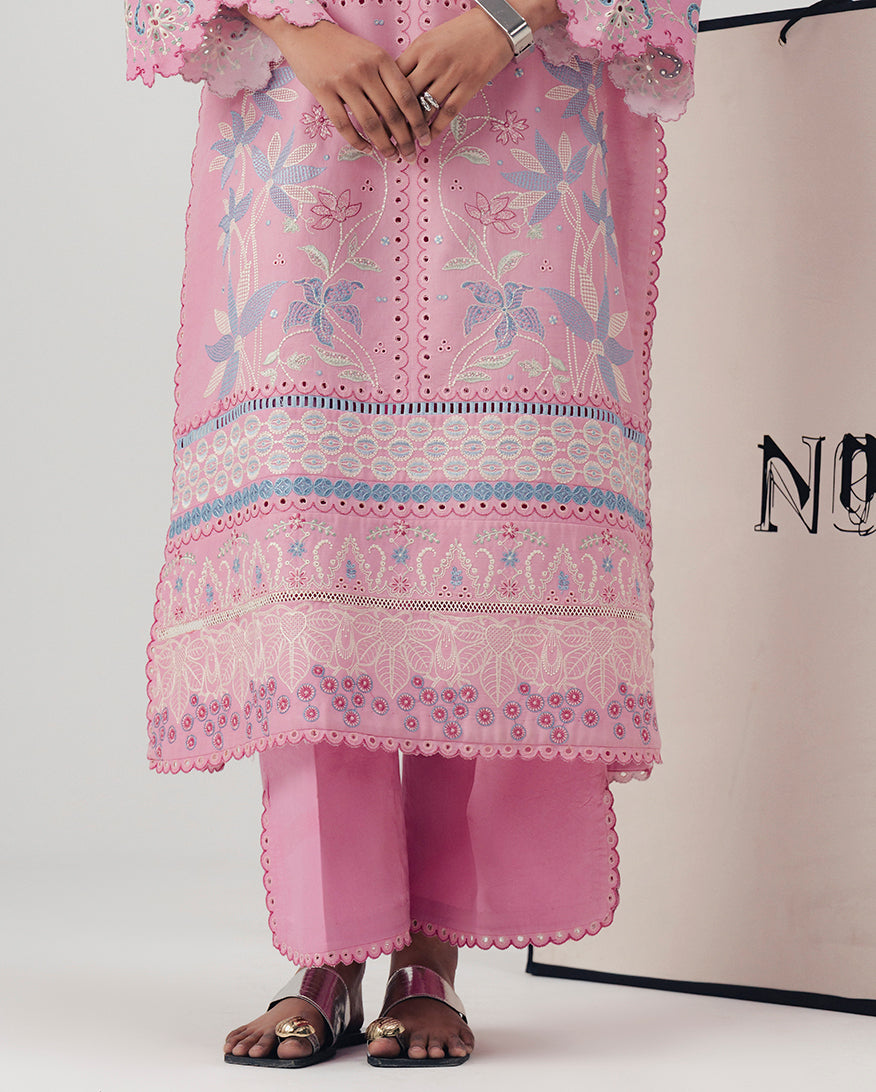 All laces used for finishing of the stitched outfit especially the dupatta or trousers may vary from the shoot.