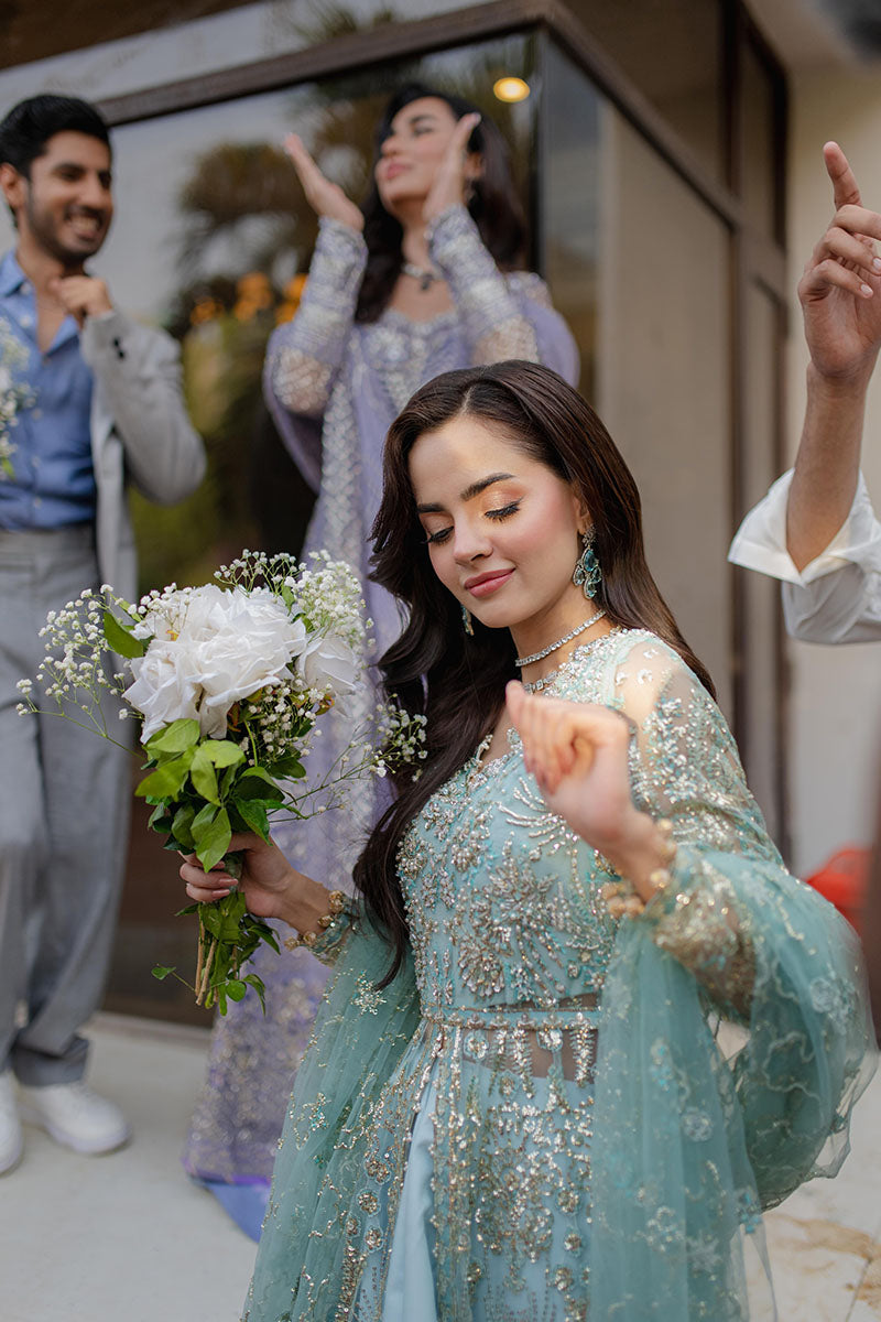 All laces used for finishing of the stitched outfit especially the dupatta or trousers may vary from the shoot.