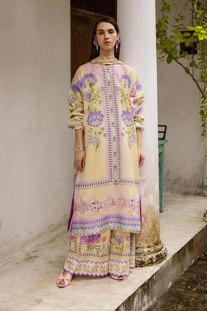 All laces used for finishing of the stitched outfit especially the dupatta or trousers may vary from the shoot.