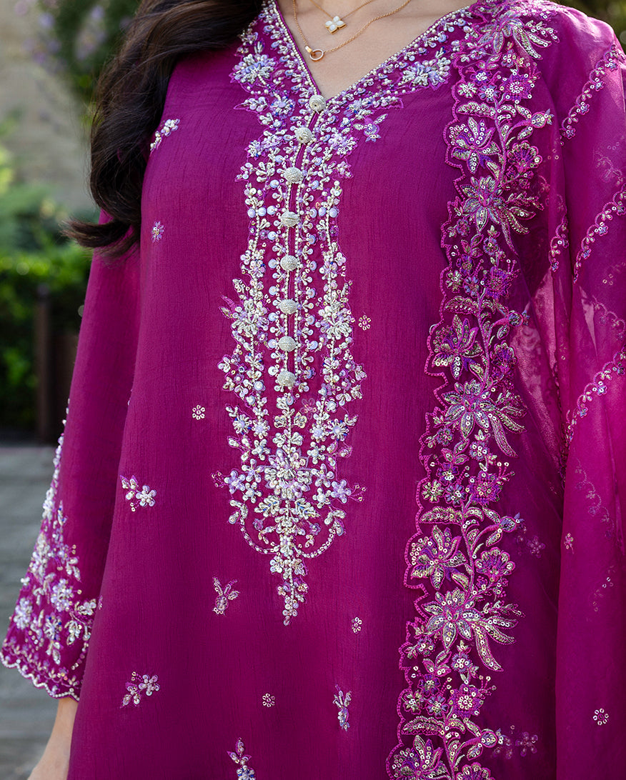 All laces used for finishing of the stitched outfit especially the dupatta or trousers may vary from the shoot.