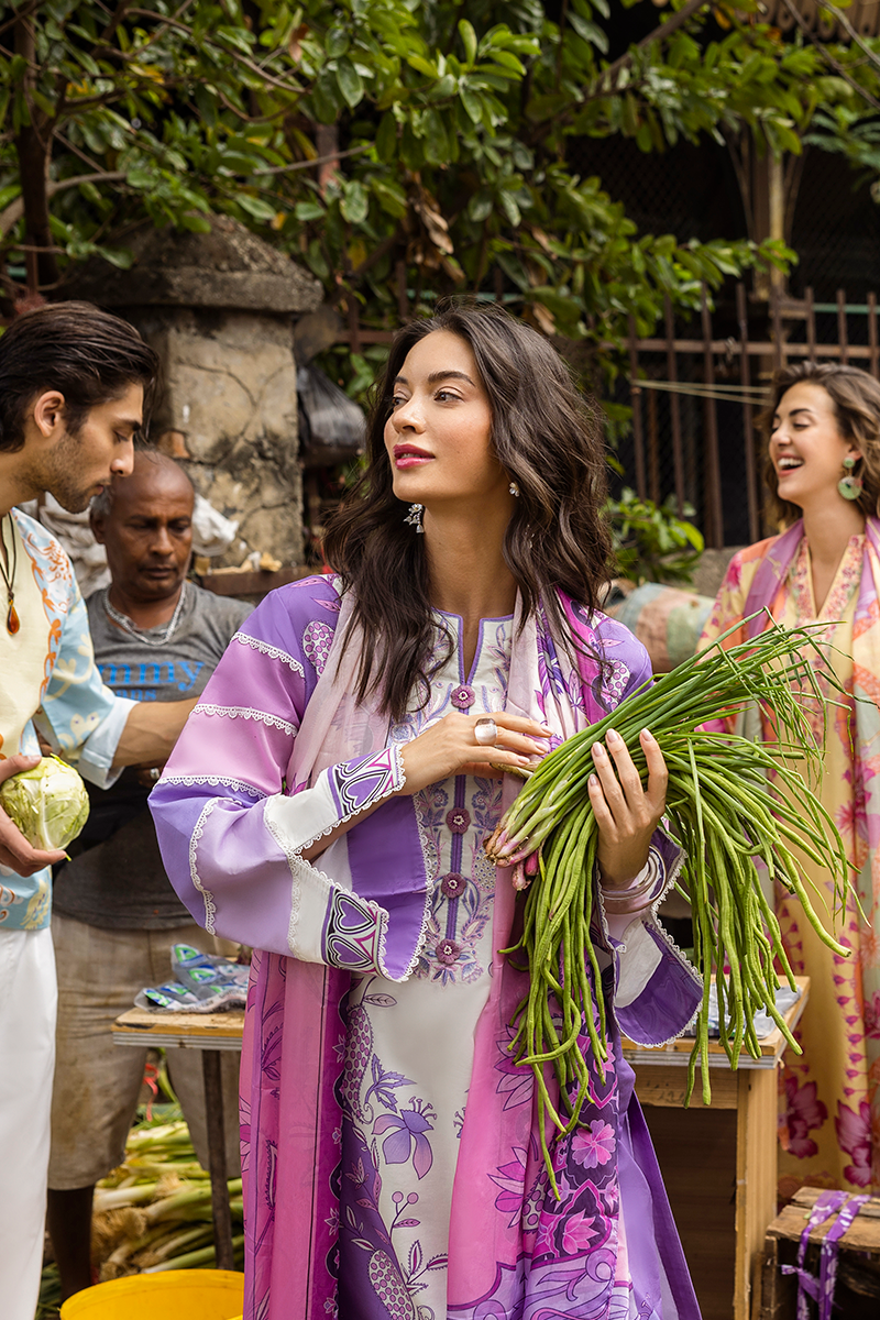 All laces used for finishing of the stitched outfit especially the dupatta or trousers may vary from the shoot.
