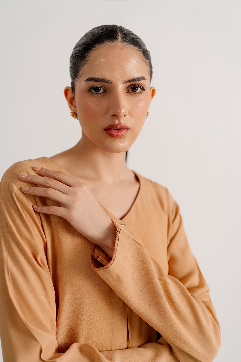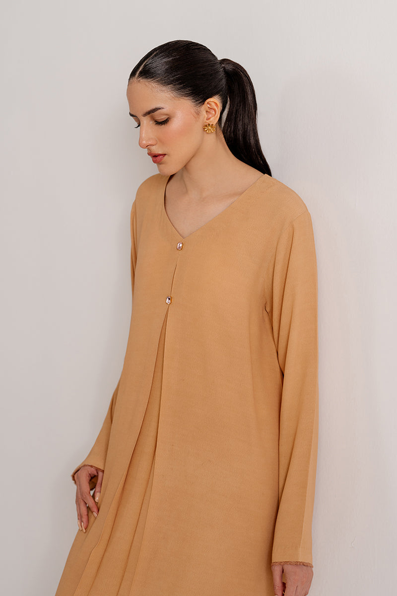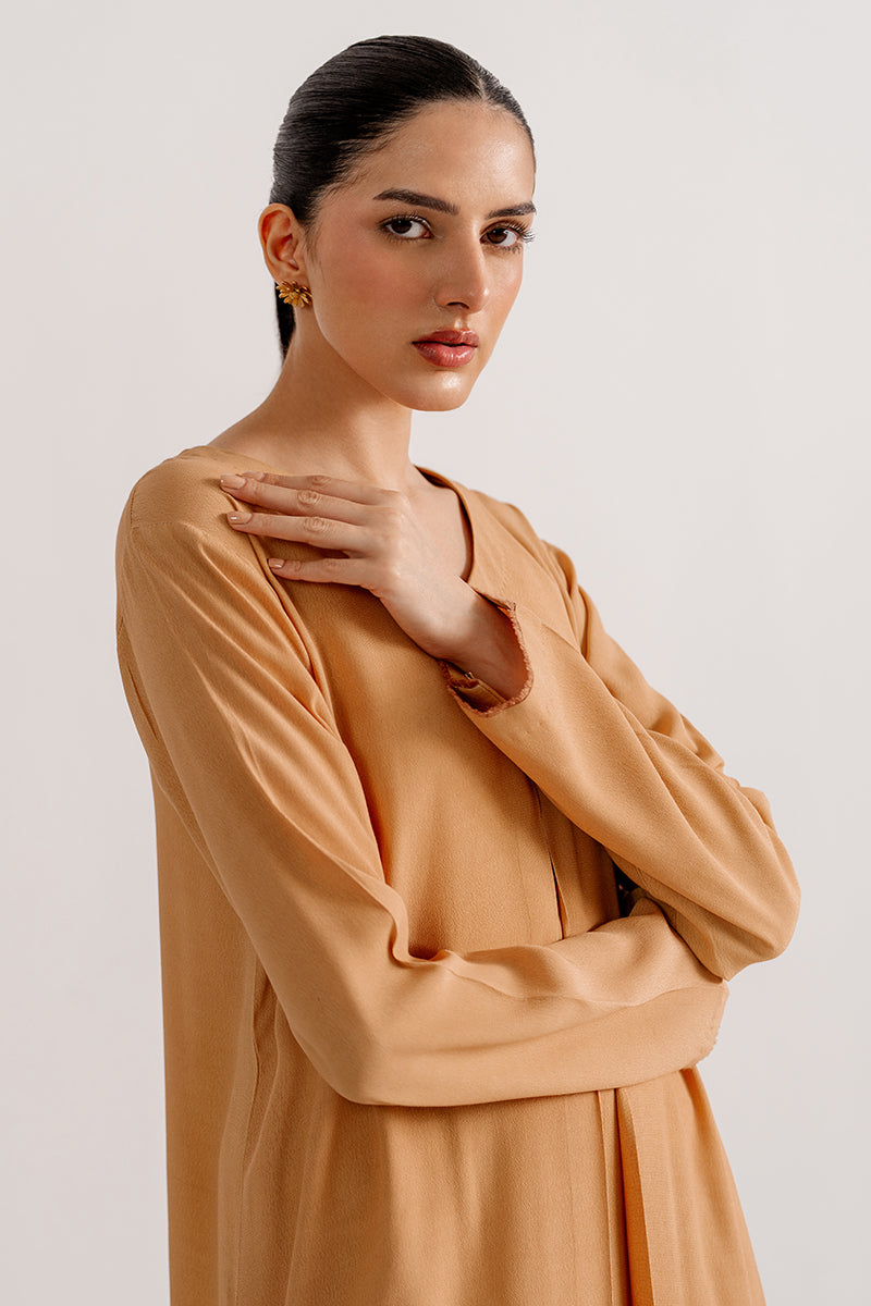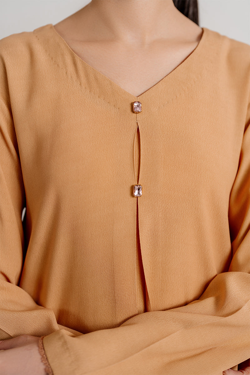 A glow of yellow, a touch of grace. This crepe dress radiates charm and vibrant elegance, perfect for any occasion.