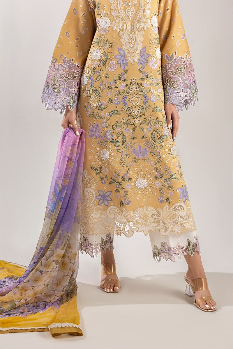 All laces used for finishing of the stitched outfit especially the dupatta or trousers may vary from the shoot.