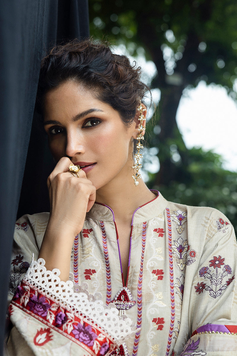 All laces used for finishing of the stitched outfit especially the dupatta or trousers may vary from the shoot.