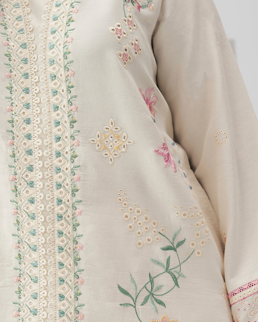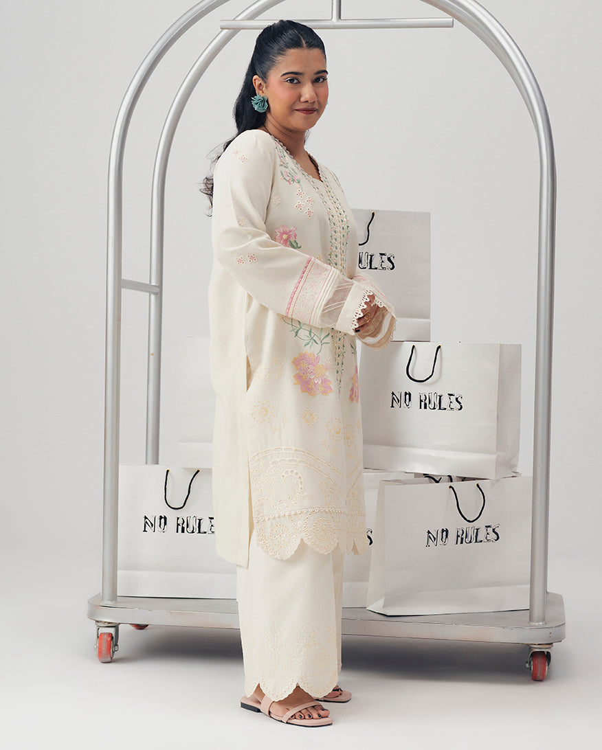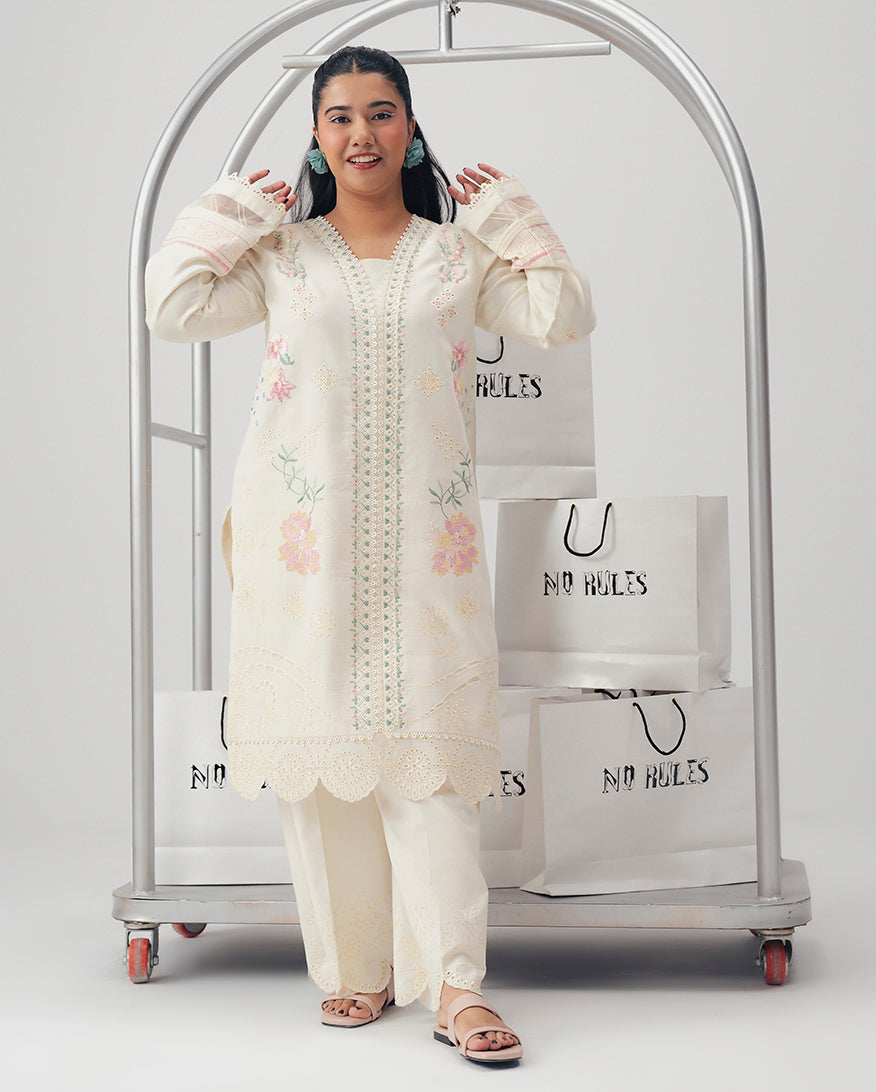 Limitless off white shirt in premium cotton fabric features a refined cotton embroidered shirt with exquisite embroidered detailing.