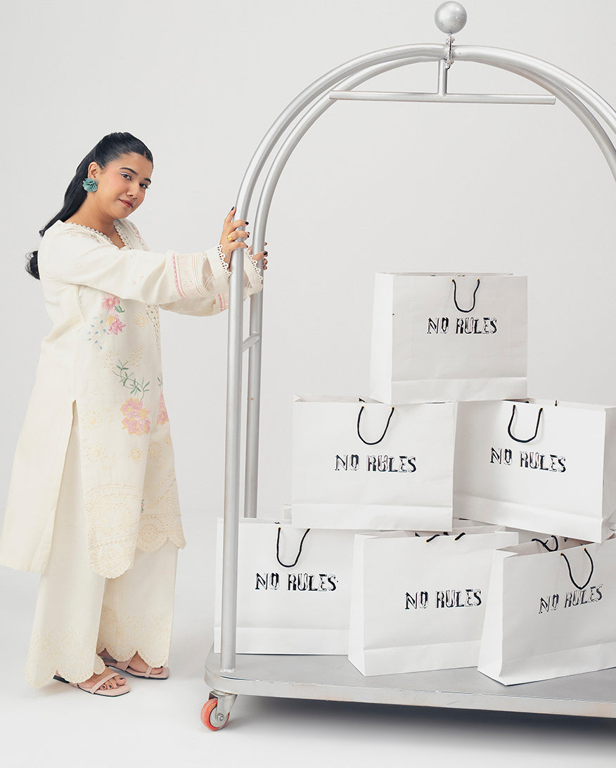 All laces used for finishing of the stitched outfit especially the dupatta or trousers may vary from the shoot.