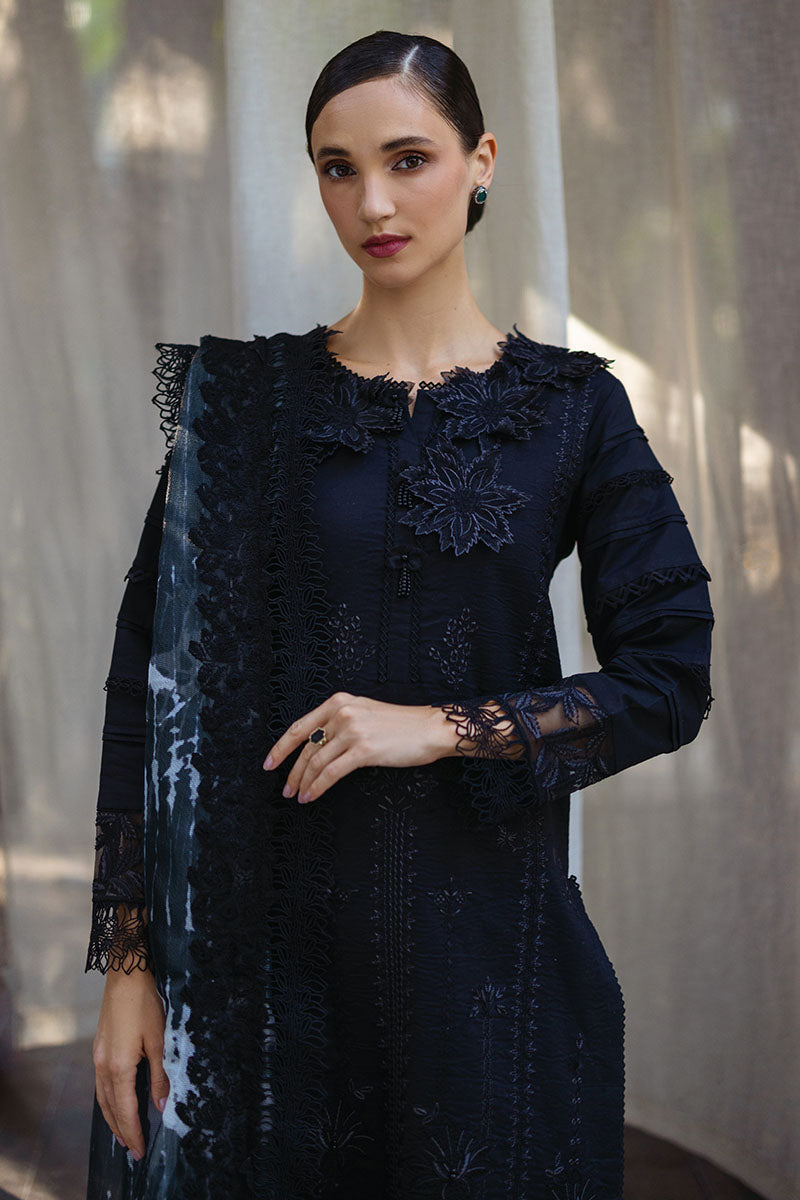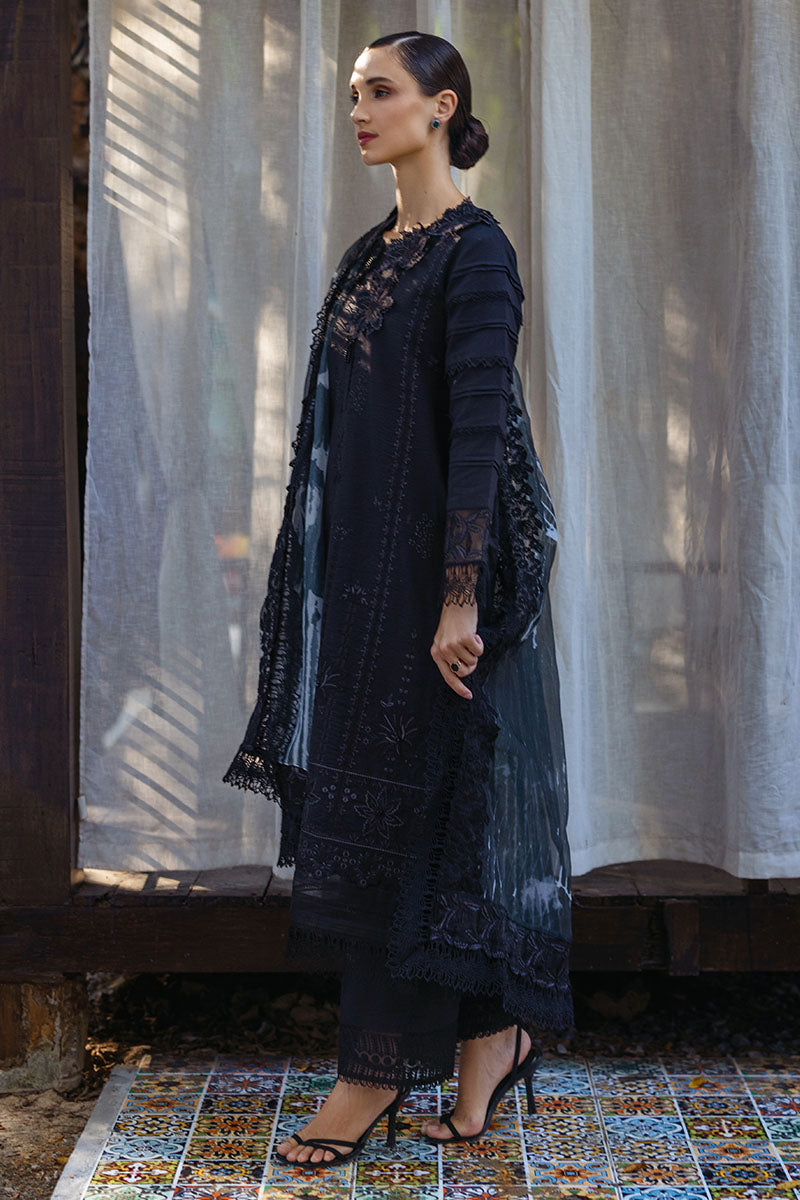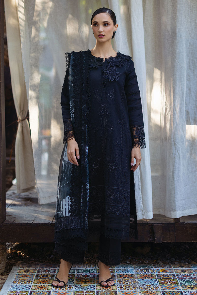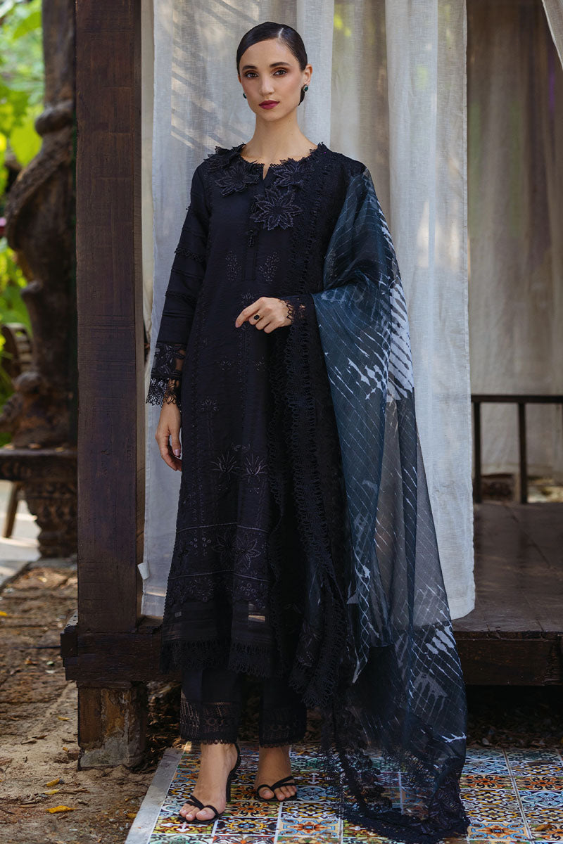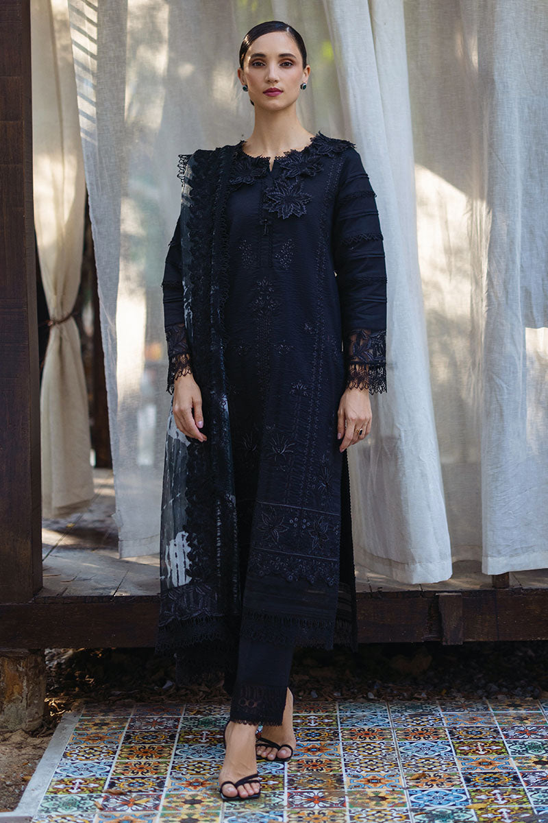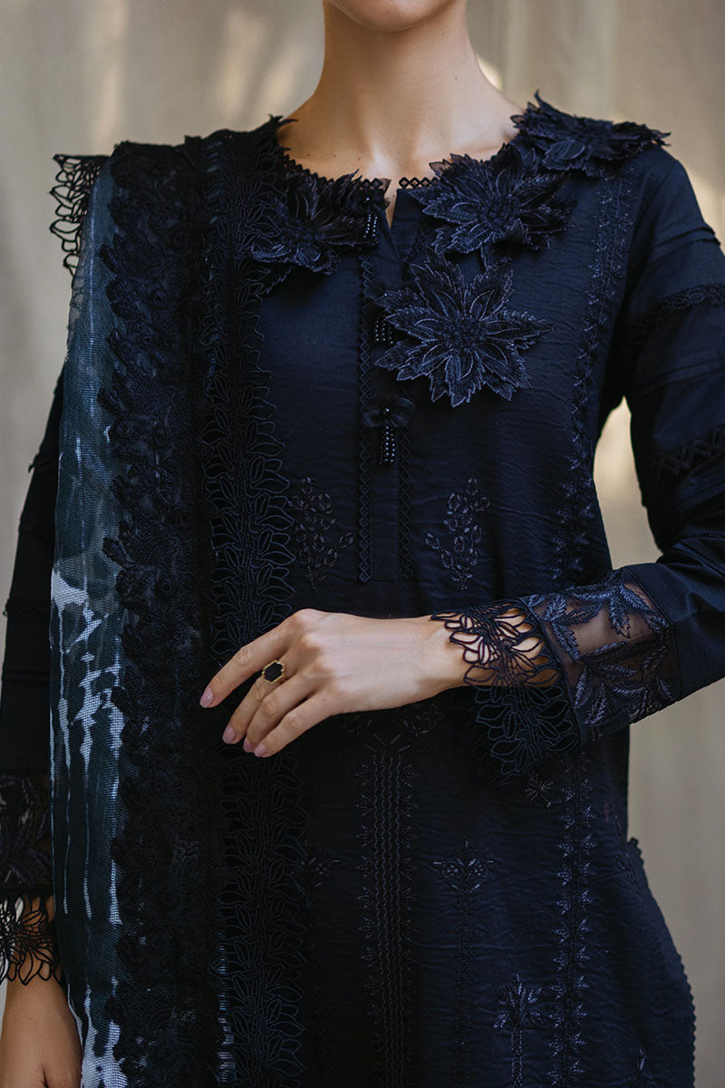Unveil the allure of 'Lina': where timeless black meets the delicate bloom of 3D flowers and embroidered artistry.