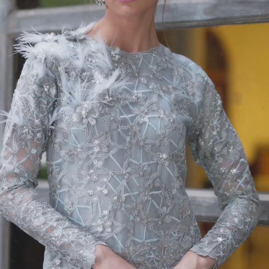 At the heart of Lumen is a resham embroidered organza shirt, meticulously crafted to elevate your style with its intricate detailing. Adorned with delicate pearl embellishments, 3D flowers, and luxurious fur accents for the shoulders, this shirt exudes a sense of timeless beauty and sophistication. Complementing the shirt are plain raw silk straight pants, offering a sleek and classic silhouette.