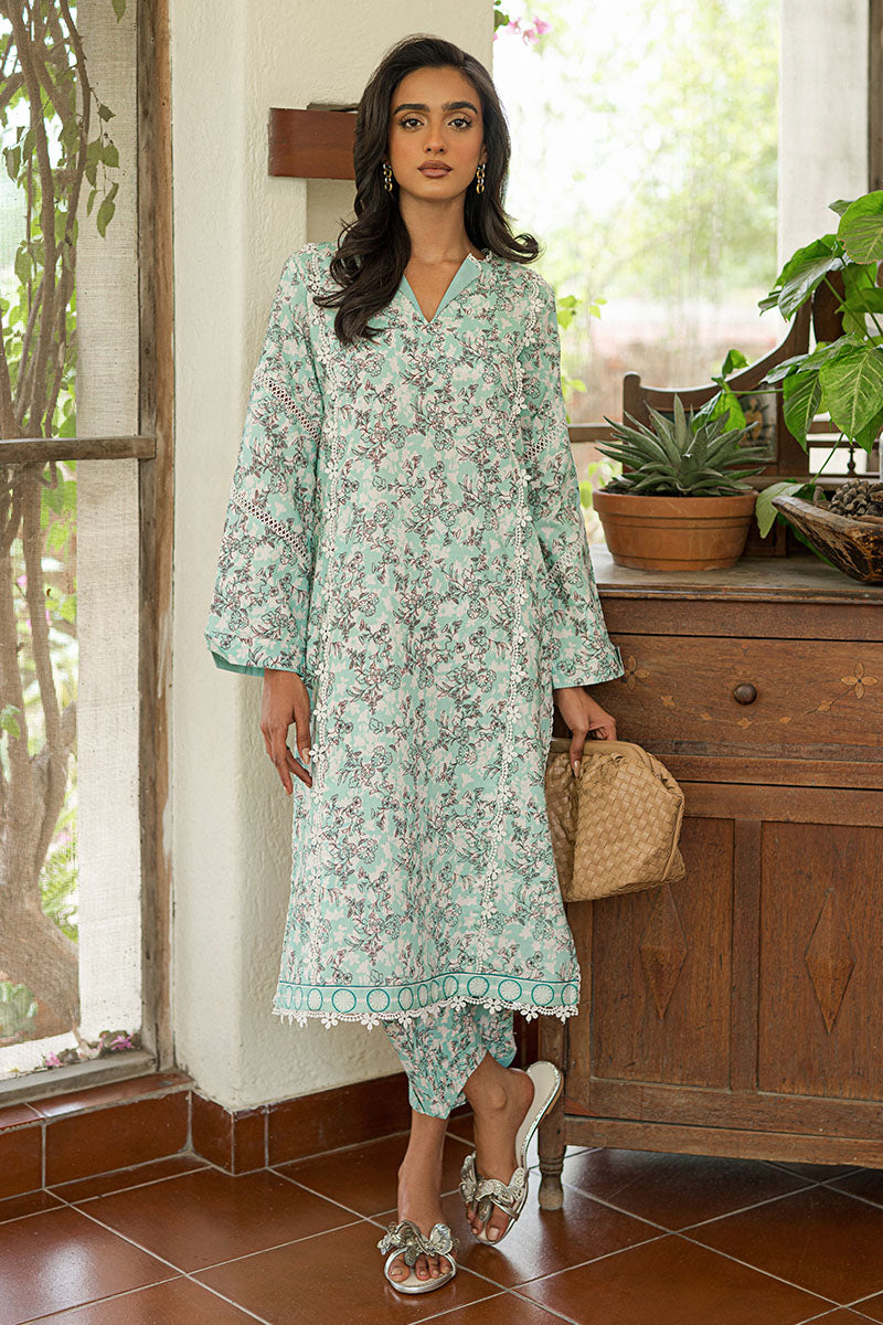 Experience the beauty of nature and the essence of simplicity in our multi-hued printed co-ord set elegantly adorned with crochet lace detailing. This is a must-have this season.