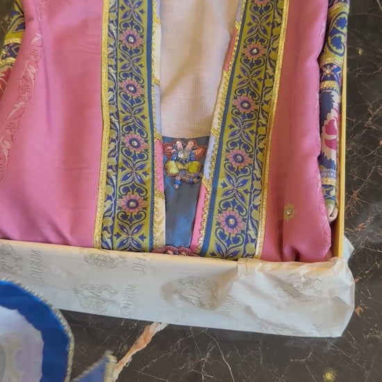 The fabric pattern/laces, patchwork, and handmade details may vary.