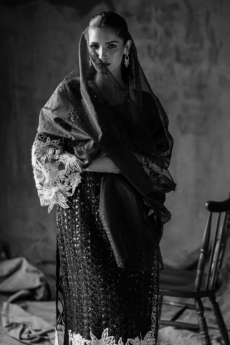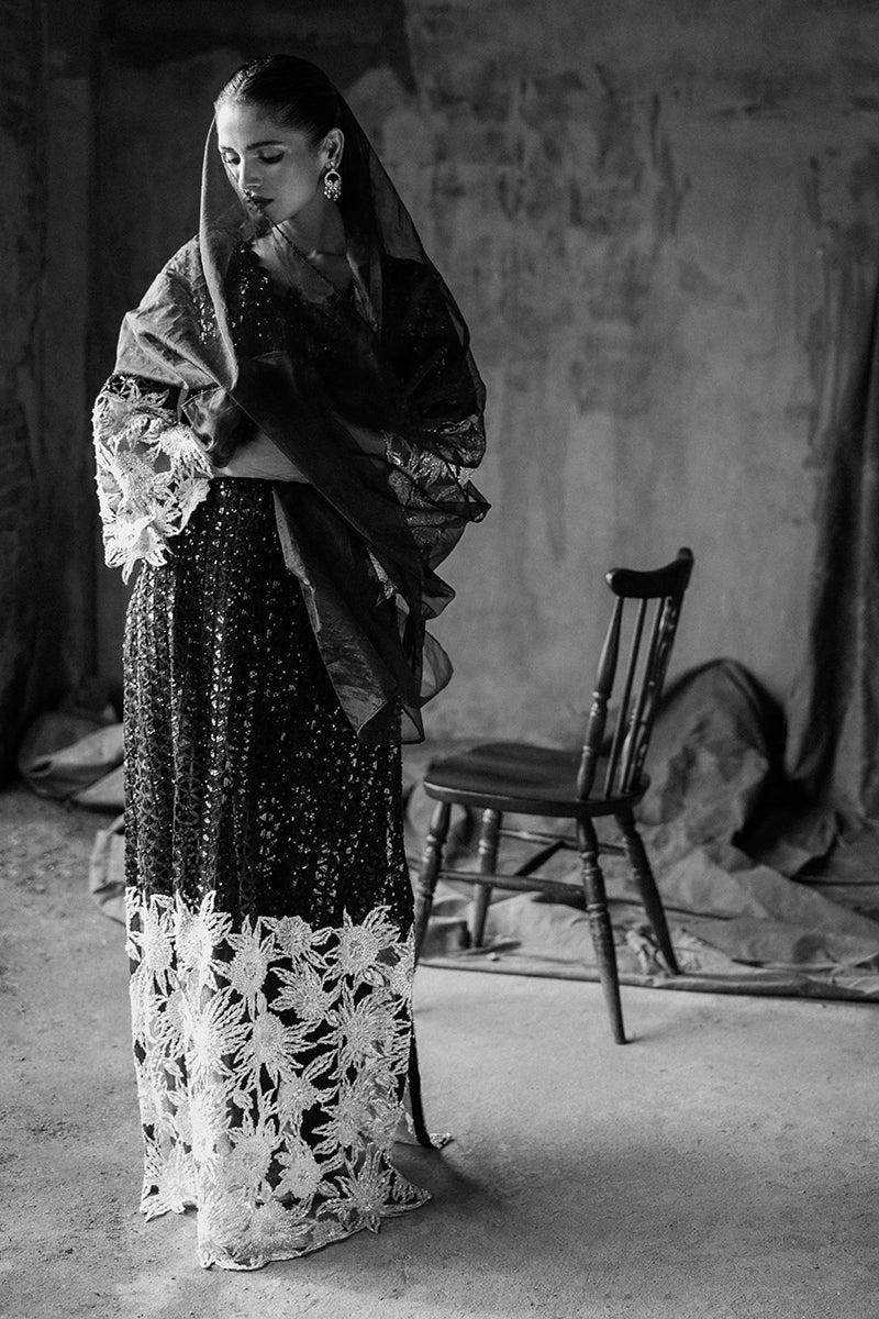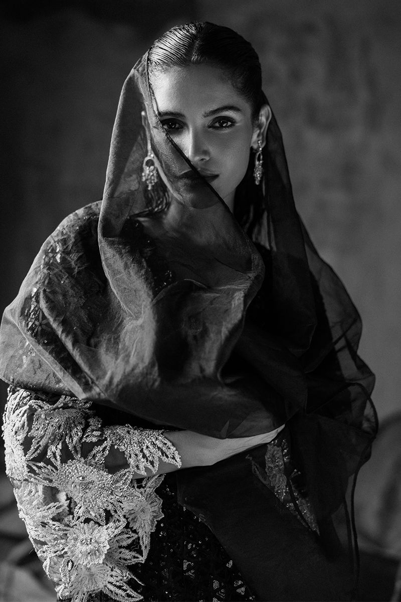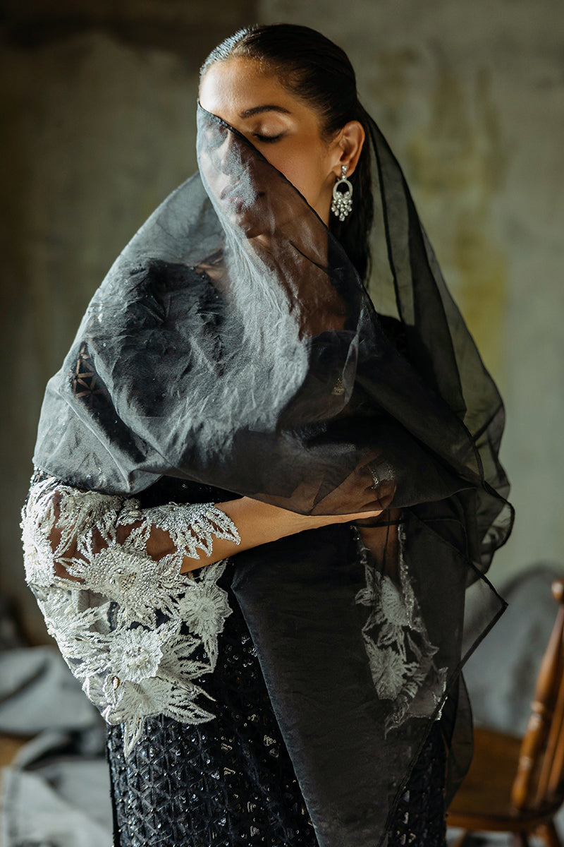 A stunning blend of elegance and sophistication, featuring an embroidered net shirt paired with luxurious raw silk trousers. The look is completed with an ethereal organza dupatta for timeless elegance.