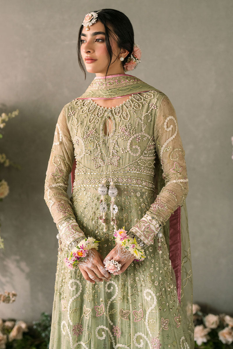 Introducing Namar —a captivating fusion of artistry and elegance. This ensemble features hand-embellished details on chiffon, creating a luxurious, textured look. The sophistication is elevated by a net dupatta, beautifully embroidered and sequinned to add a touch of glamour and refinement. Perfect for making a standout impression at any event.