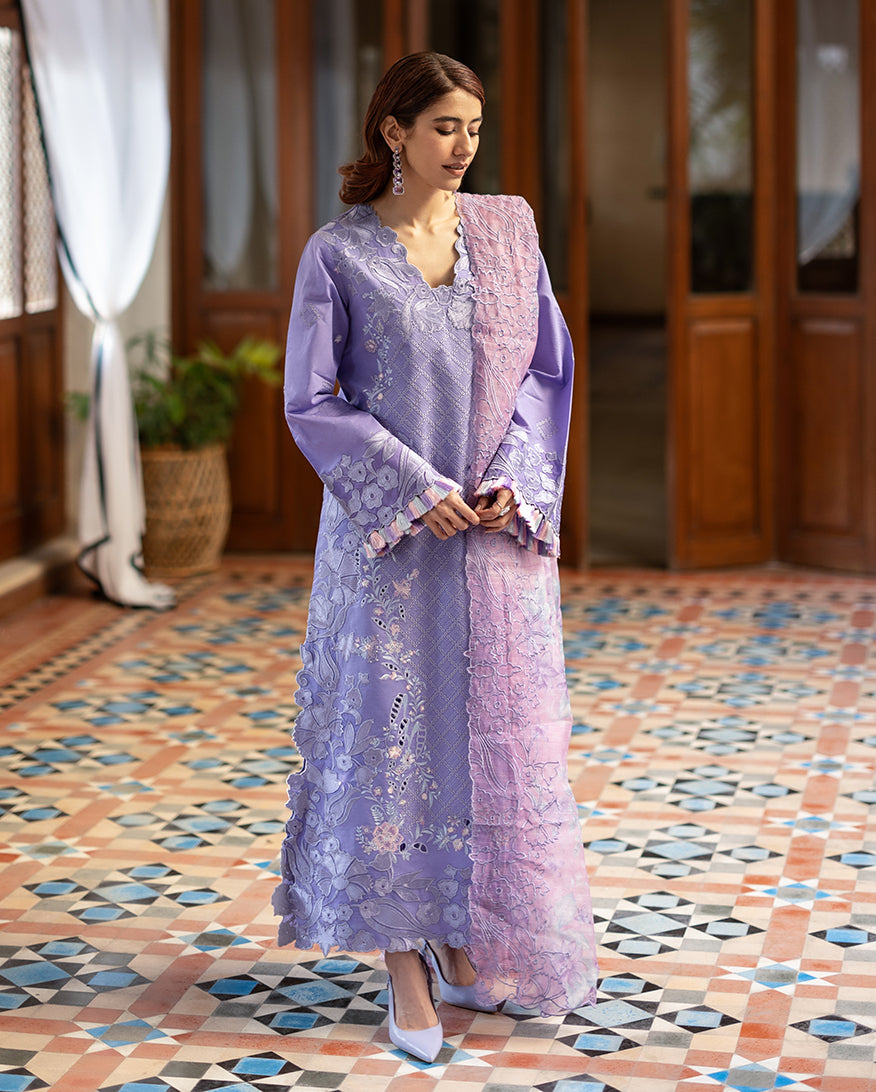 All laces used for finishing of the stitched outfit especially the dupatta or trousers may vary from the shoot.