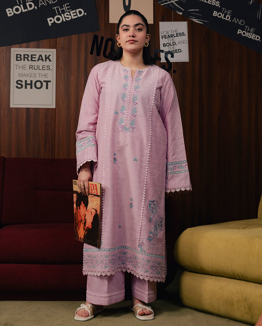 All laces used for finishing of the stitched outfit especially the dupatta or trousers may vary from the shoot.