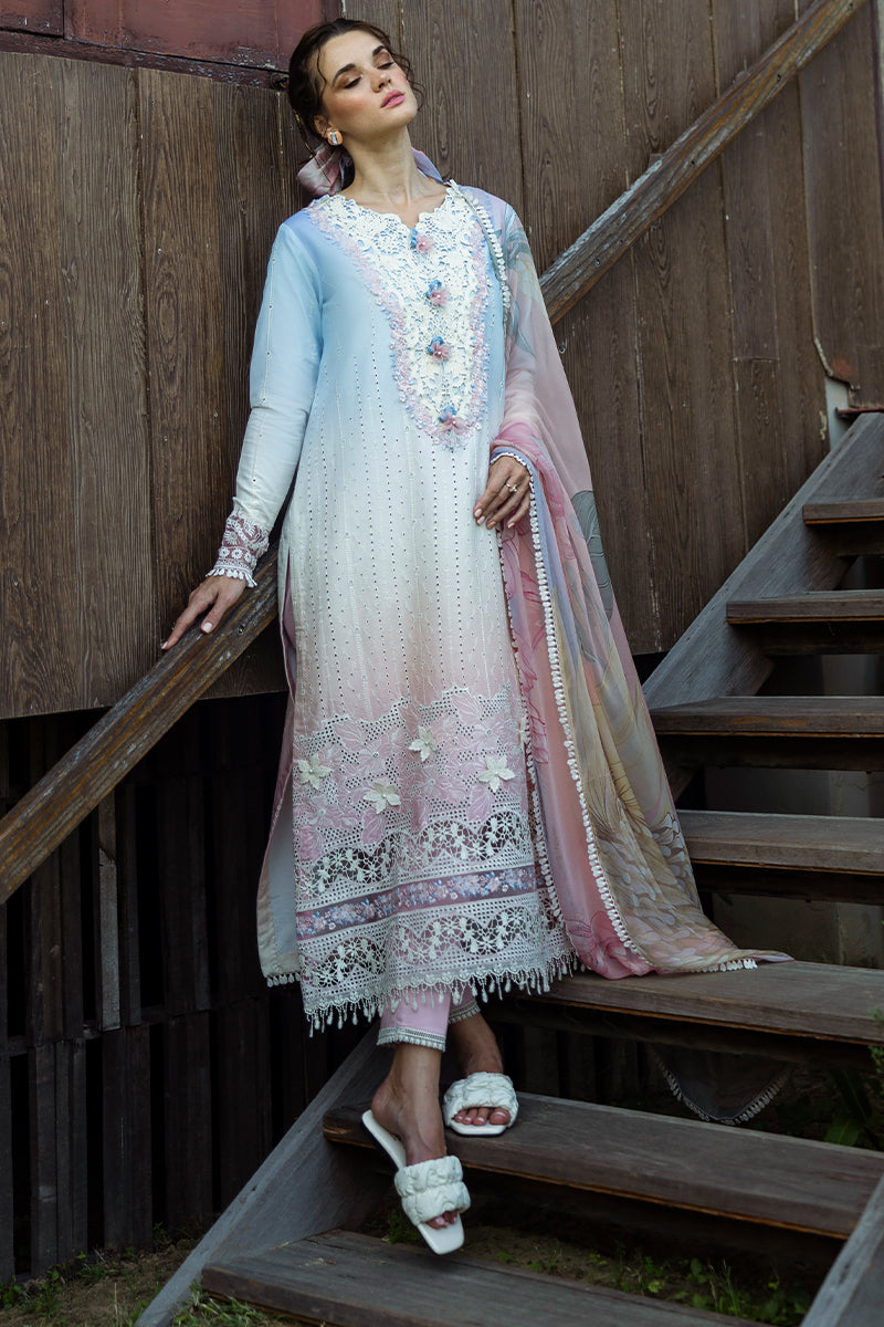 All laces used for finishing of the stitched outfit especially the dupatta or trousers may vary from the shoot.