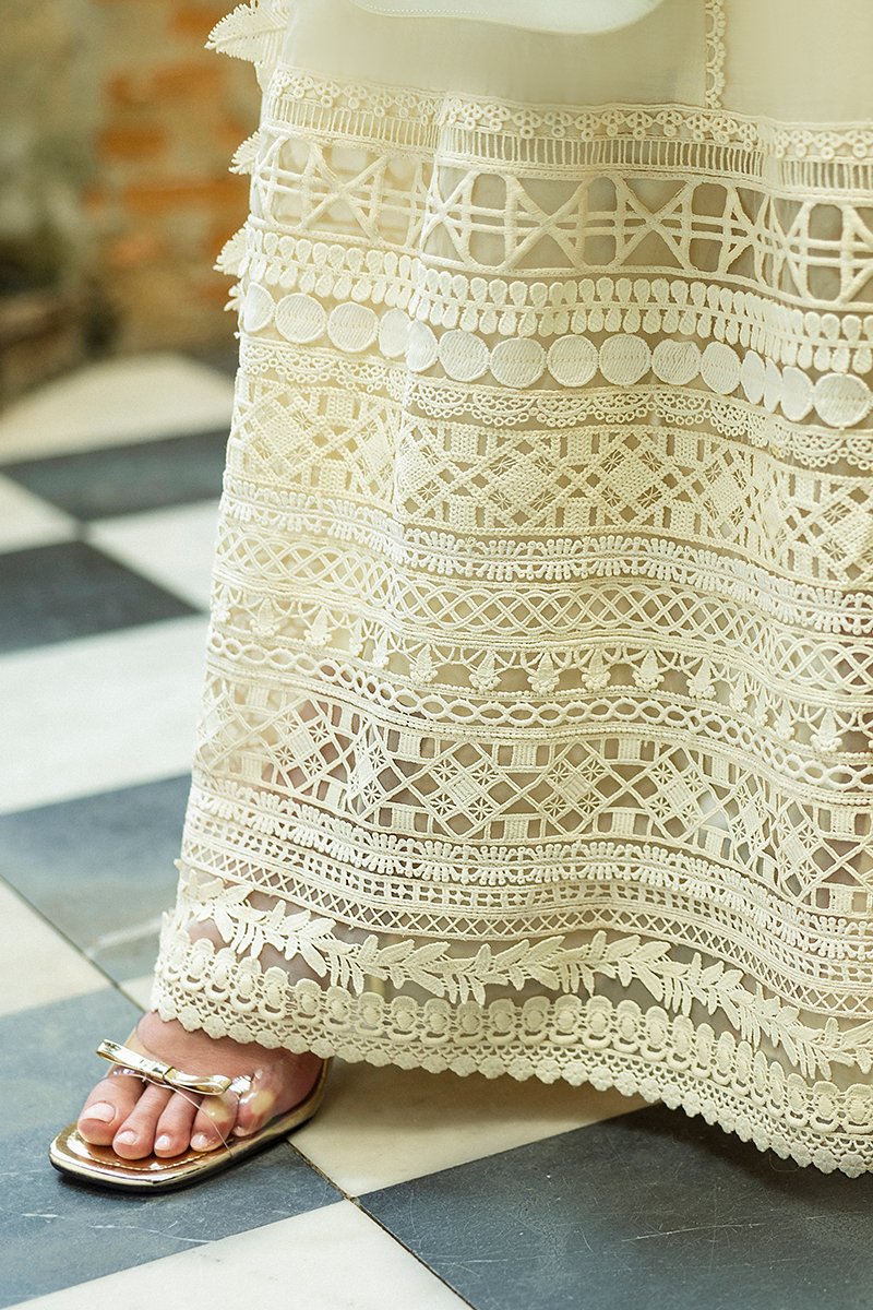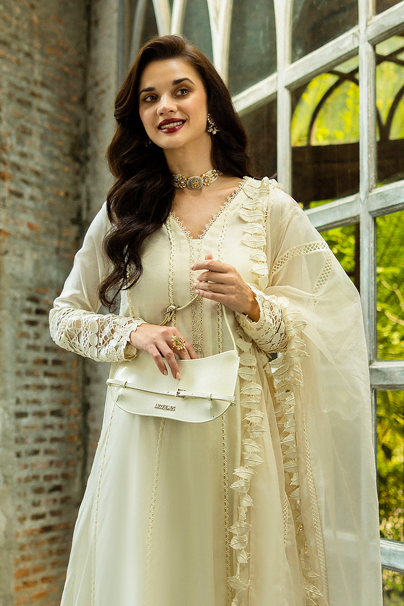 Quinn is a vision of pure elegance. Drenched in a pristine white hue, this ensemble embodies grace, sophistication, and understated luxury perfect for a refined Eid look. The pure Spench silk shirt exudes an effortless sheen, adorned with intricate detailing for a touch of opulence. A delicate BM organza dupatta drapes beautifully, adding an airy, ethereal charm. Raw silk trousers provide a structured yet fluid silhouette, ensuring a flawless fit. Lined with a silk inner, offering unmatched comfort and a seamless drape.