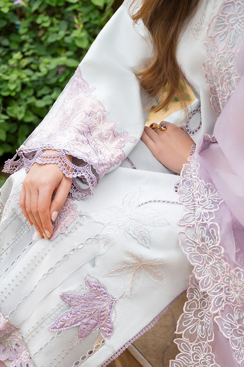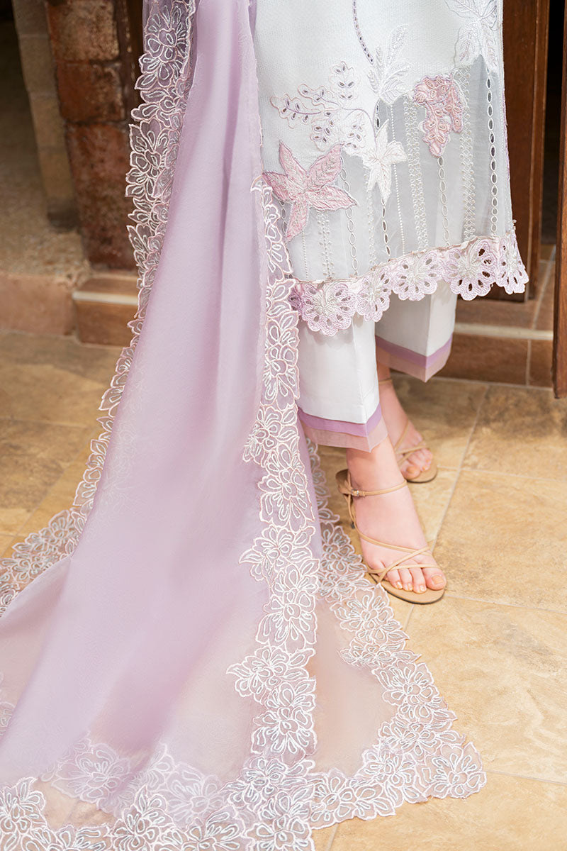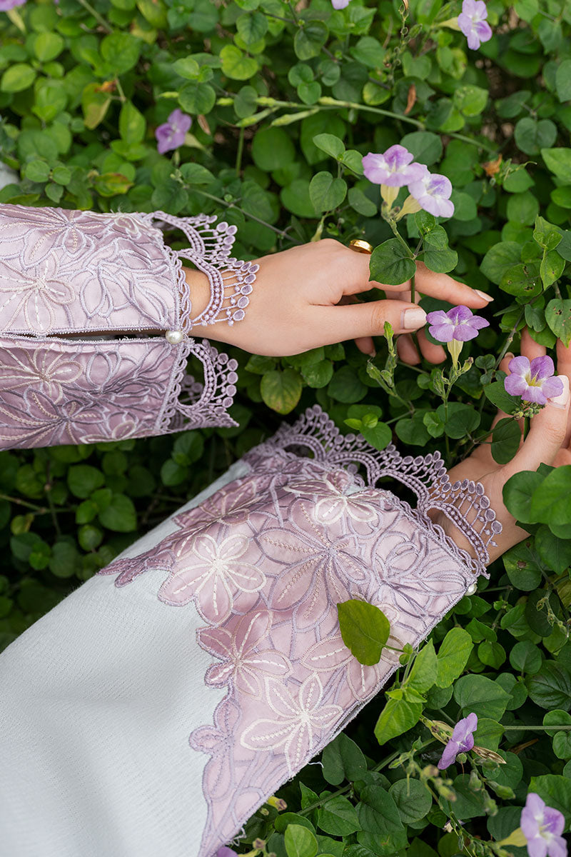 With REBEL, you'll make a bold statement without saying a word. This subtly colored ensemble features a cotton shirt and trouser blend paired with a captivating Lilac organza dupatta featuring stunning floral borders. The shirt boasts exquisite floral embroidery that exudes confidence and daring.