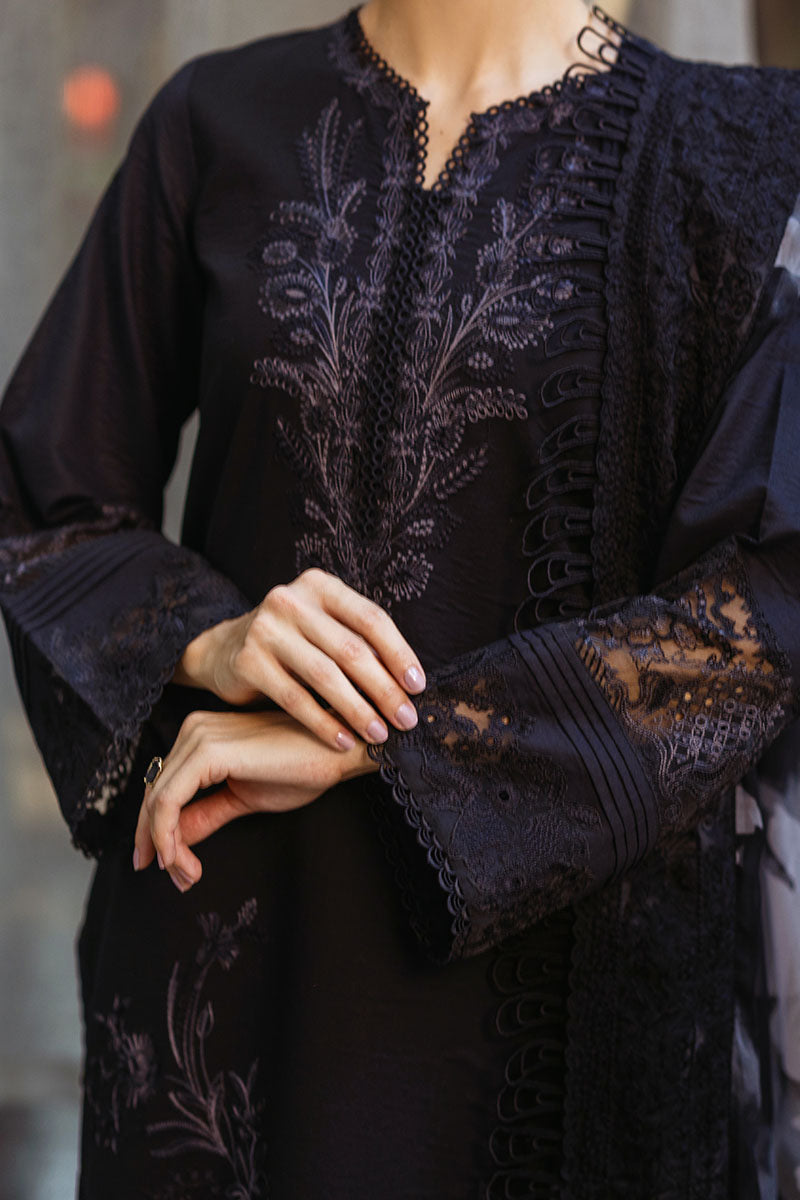 "Reem," where elegance meets sophistication in the timeless allure of black. This stunning outfit exudes luxury with its intricate embroidered details, meticulously crafted to captivate attention. Perfect for those who appreciate refined style.