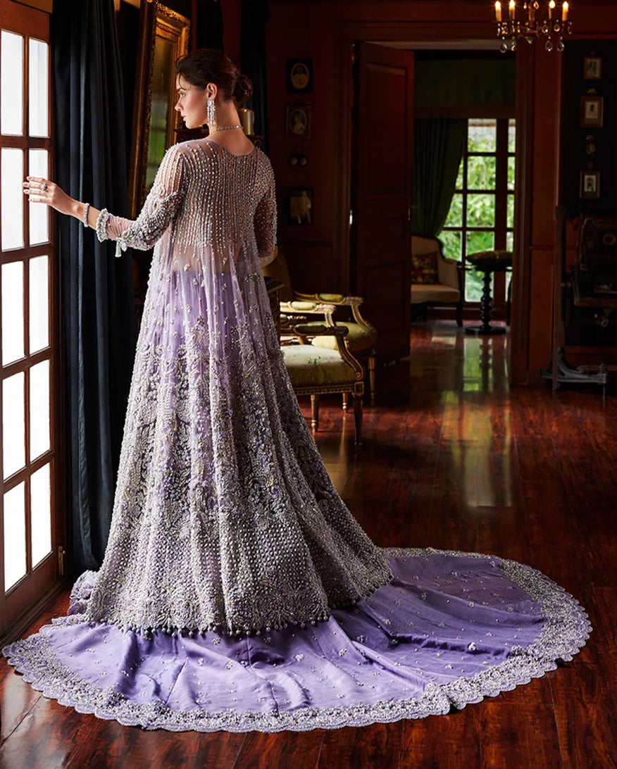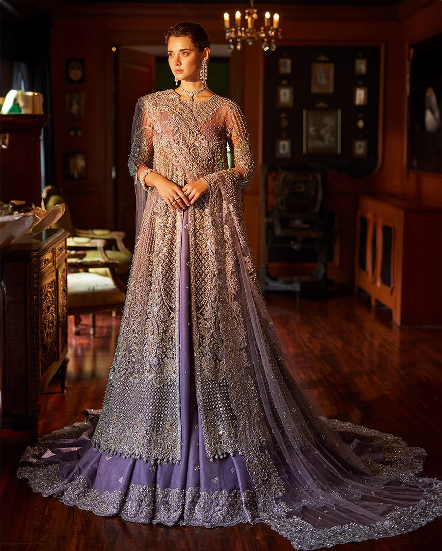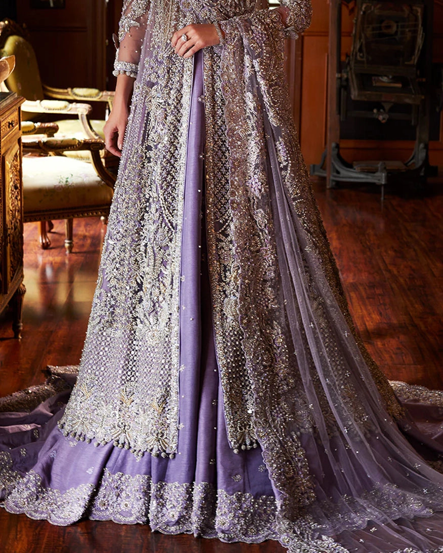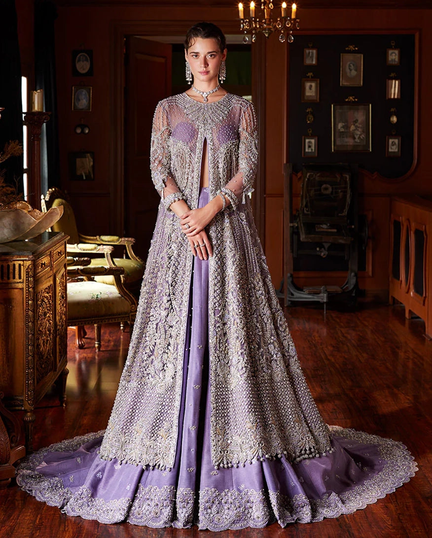 Introducing Seraphina, a celestial creation that will transport you to a realm of celestial beauty. This bridal outfit is a symphony of hand embellished Swarovski crystals, and sequins, meticulously arranged to form intricate floral motifs that dance in the light. The illusion neckline and sheer back, add a touch of sensuality, while the voluminous skirt, creates a dreamy, fairy-tale effect. Seraphina is a testament to the art of couture, designed for the bride who desires nothing but the extraordinary.