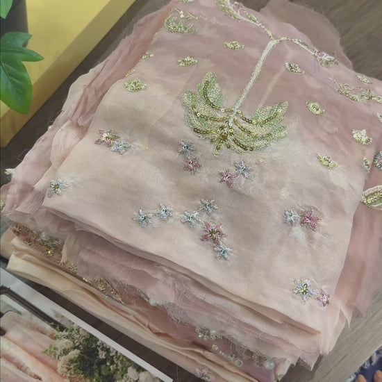 • Embroidered, sequinned pearl embellished back daman border (organza)