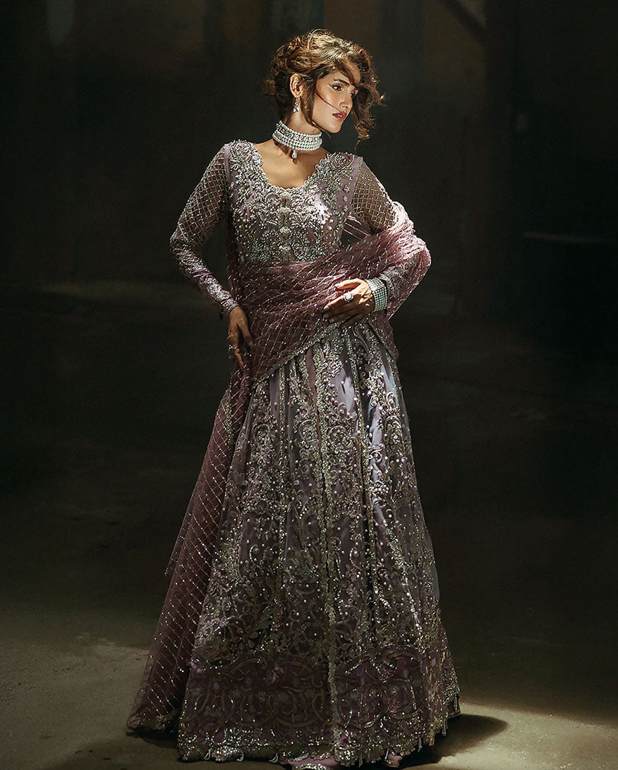All laces used for finishing of the stitched outfit especially the dupatta or trousers may vary from the shoot.