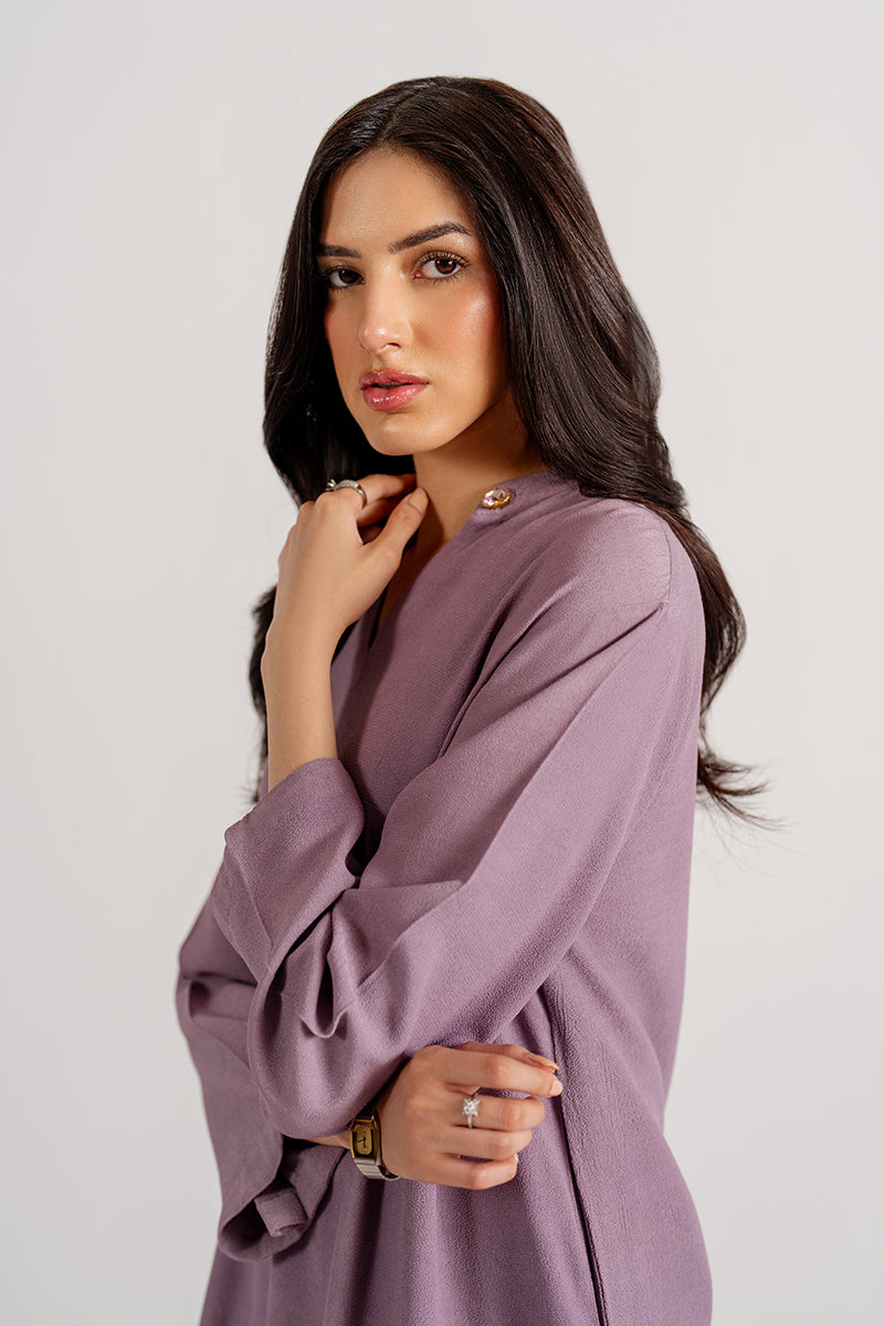 Elevate your everyday with this bold purple crepe dress - where simplicity meets timeless charm.