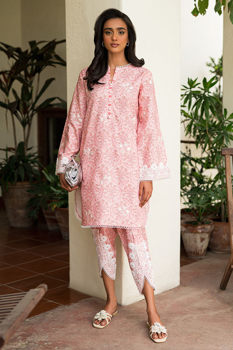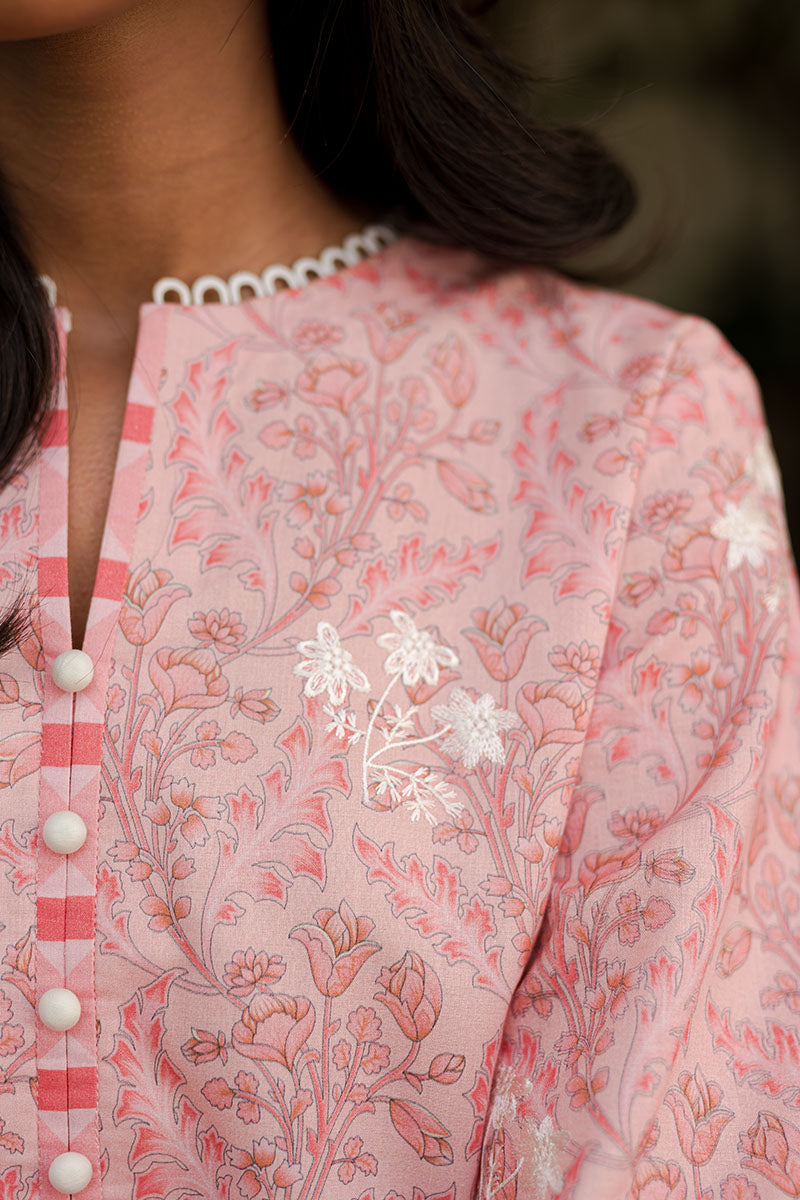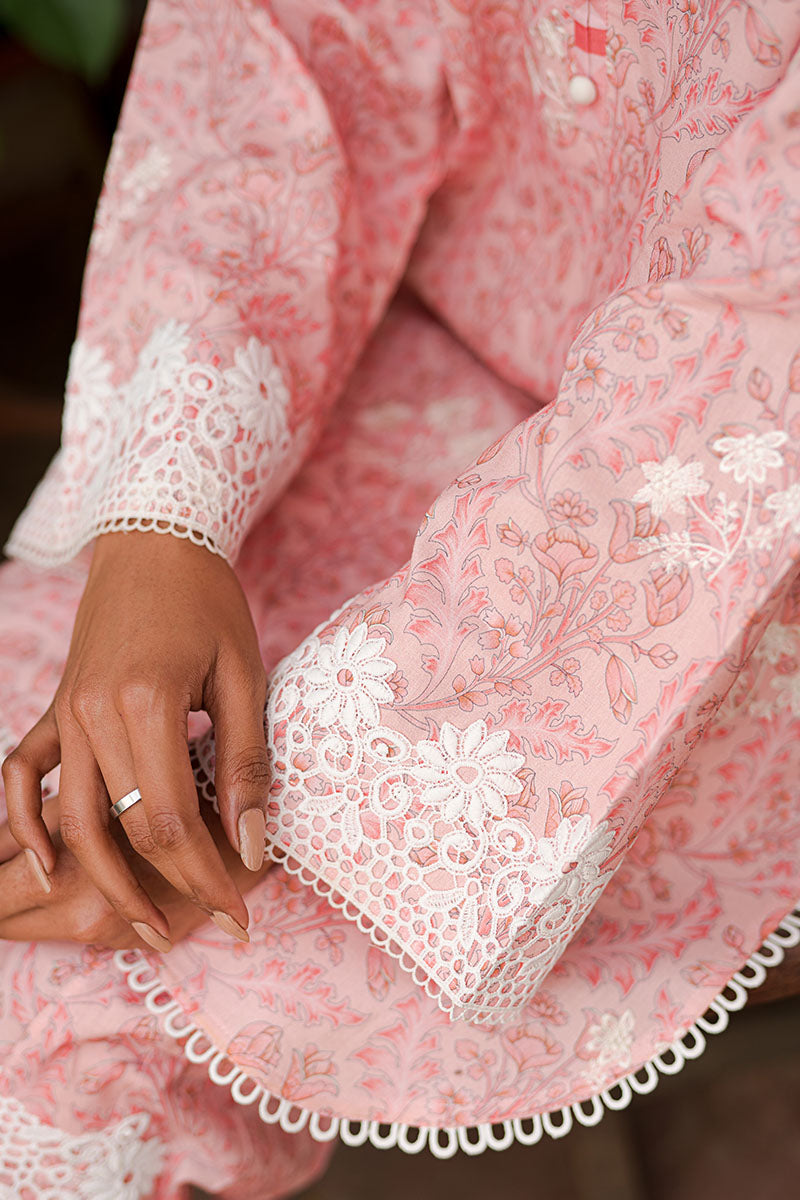 Embrace the essence of spring in our stunning pink co-ord set featuring a beautiful print with some embroidered detailing in white. The elegant design will transport you to a world of beauty and grace.