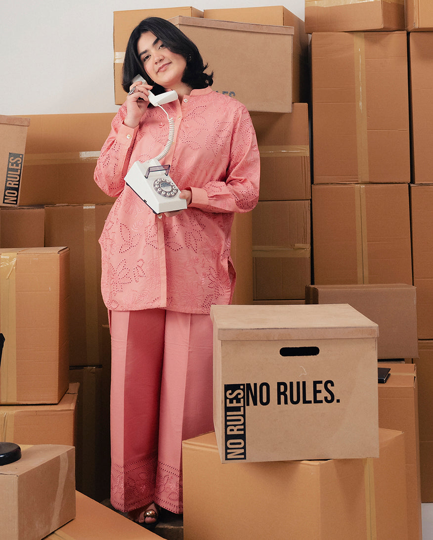 Float through the day in Unshaped a cotton embroidered shirt with matching cotton trousers. It offers comfort that moves with you, effortlessly chic for women who embrace ease.