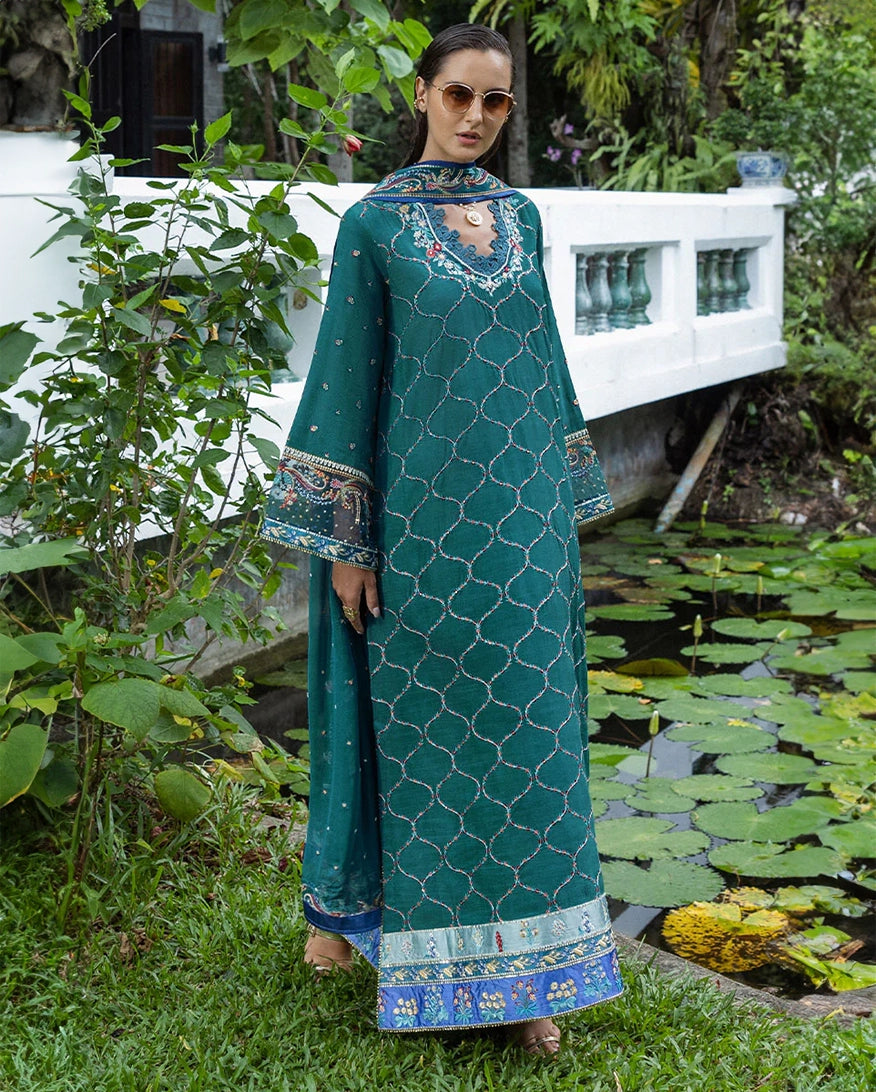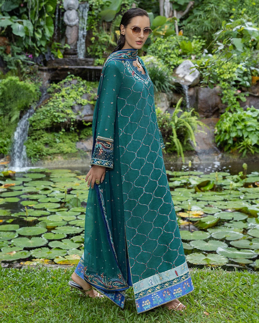 All laces used for finishing of the stitched outfit especially the dupatta or trousers may vary from the shoot.