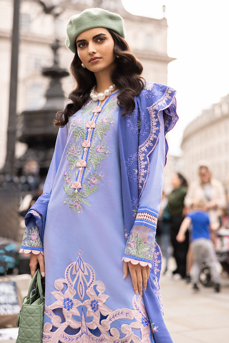 Embrace the sophistication of the city lights with our "West End Wool" ensemble, a masterpiece that marries tradition and contemporary elegance. The embroidered karandi shirt, adorned with intricate silk applique on the front, exudes timeless charm and artistic allure. Paired with an embroidered karandi shawl featuring delicate crochet lace finishings, this ensemble is a celebration of exquisite craftsmanship and refined style.
