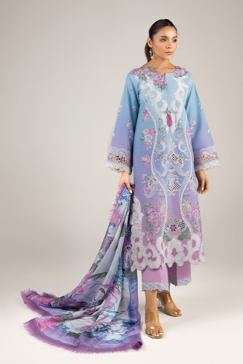 All laces used for finishing of the stitched outfit especially the dupatta or trousers may vary from the shoot.