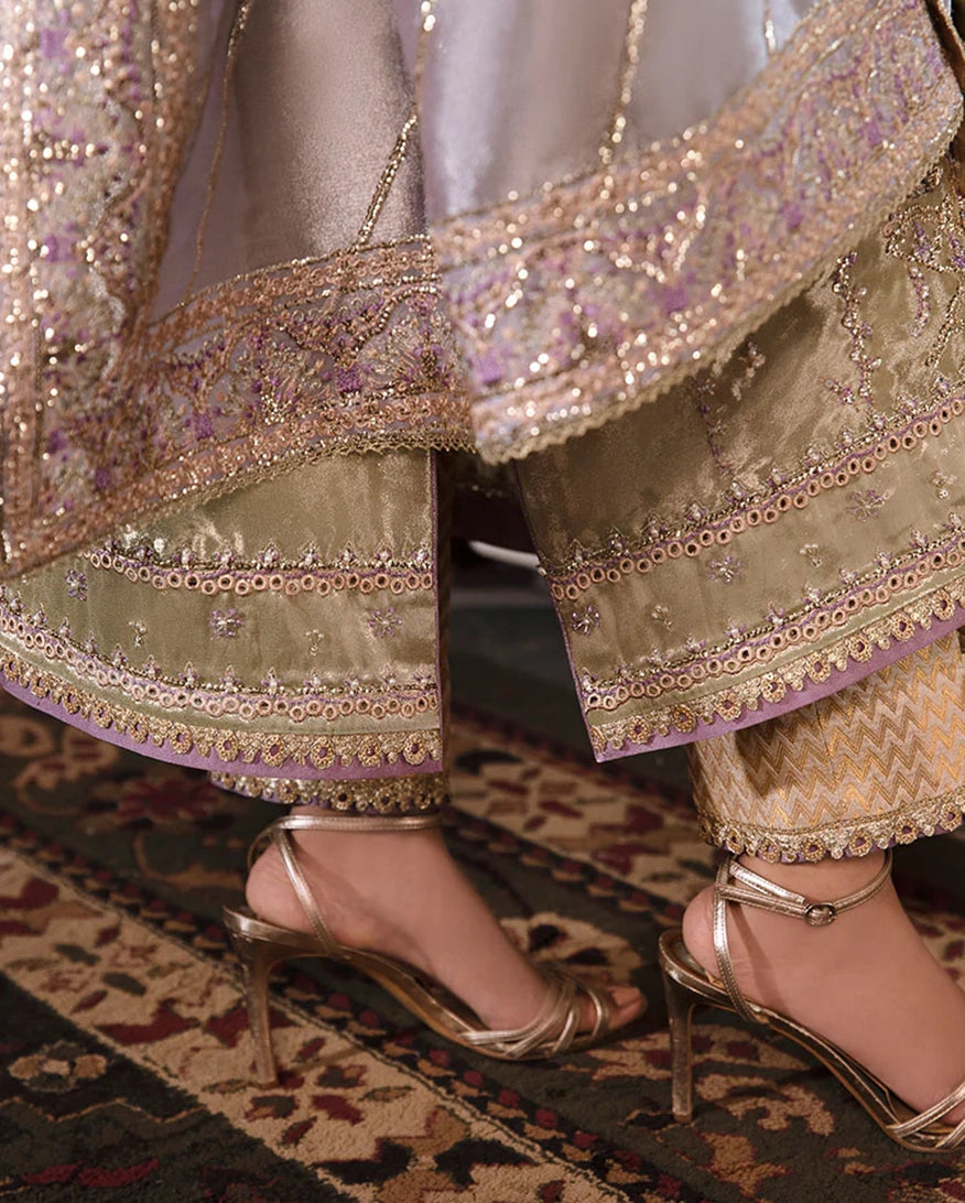Experience the allure of our silk masterpiece intricately detailed with stunning beadwork and meticulous threadwork. Each stitch reflects artisanal craftsmanship, weaving a narrative of elegance and sophistication, adding a touch of timeless charm to your ensemble.